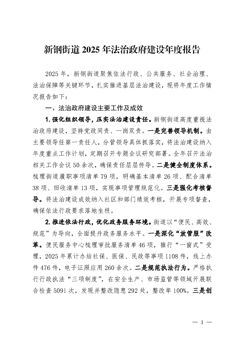 新鋼街道2025年法治政府建設(shè)年度報(bào)告