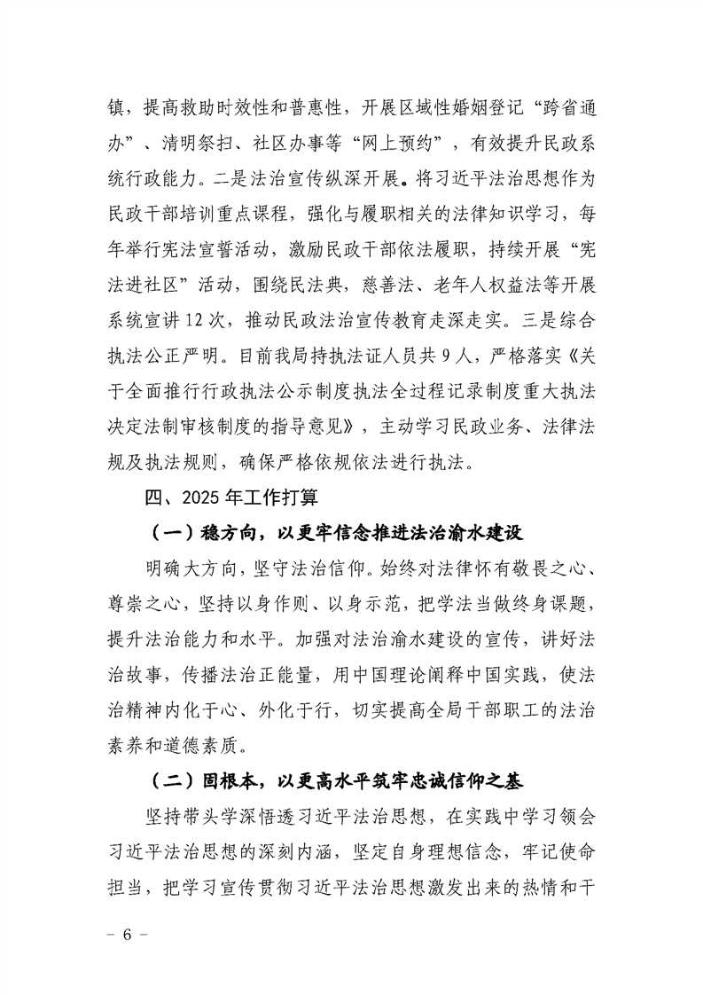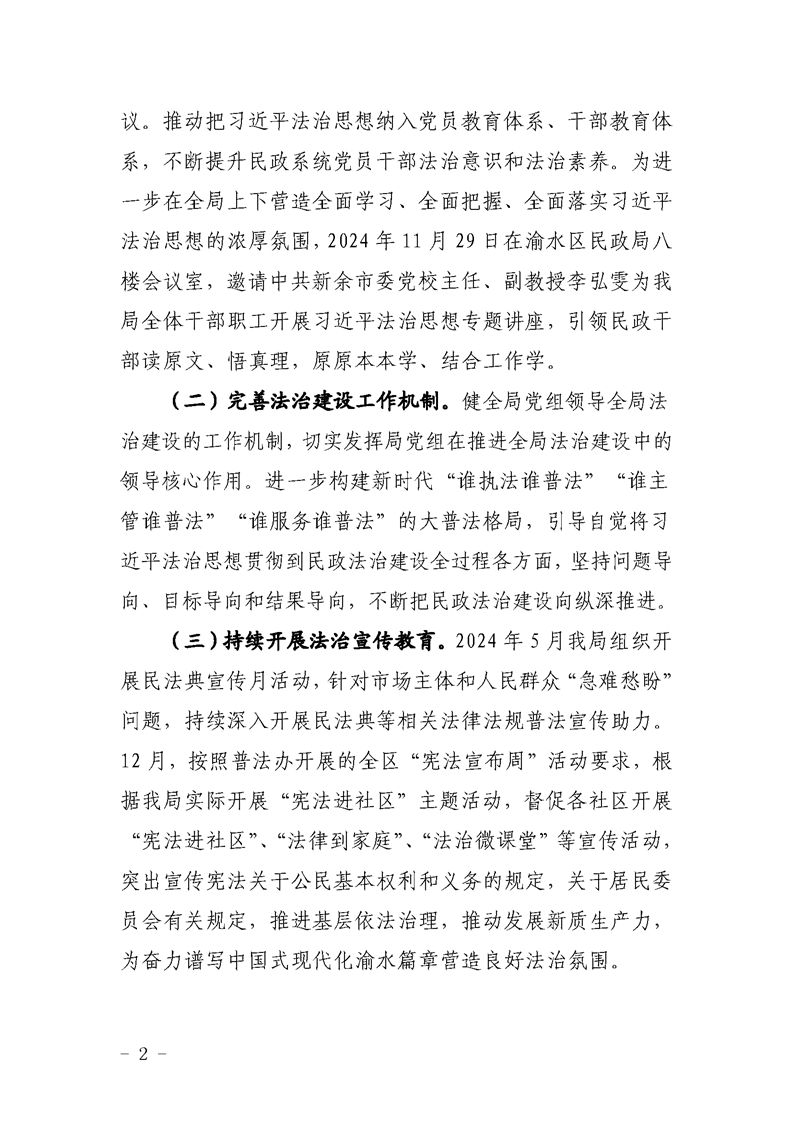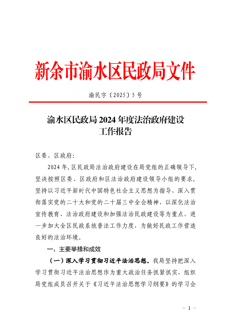 渝水區民政局2024年度法治政府建設工作報告