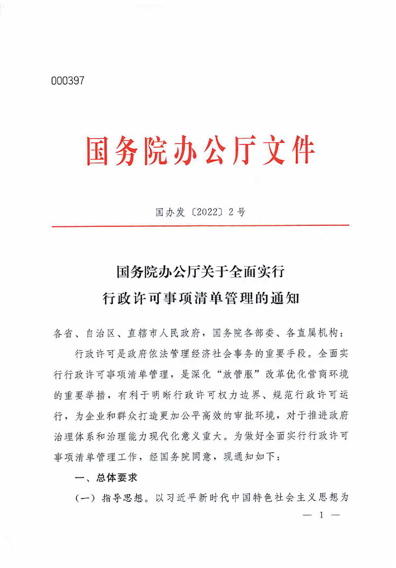 國務院辦公廳關于全面實行行政許可事項清單管理的通知