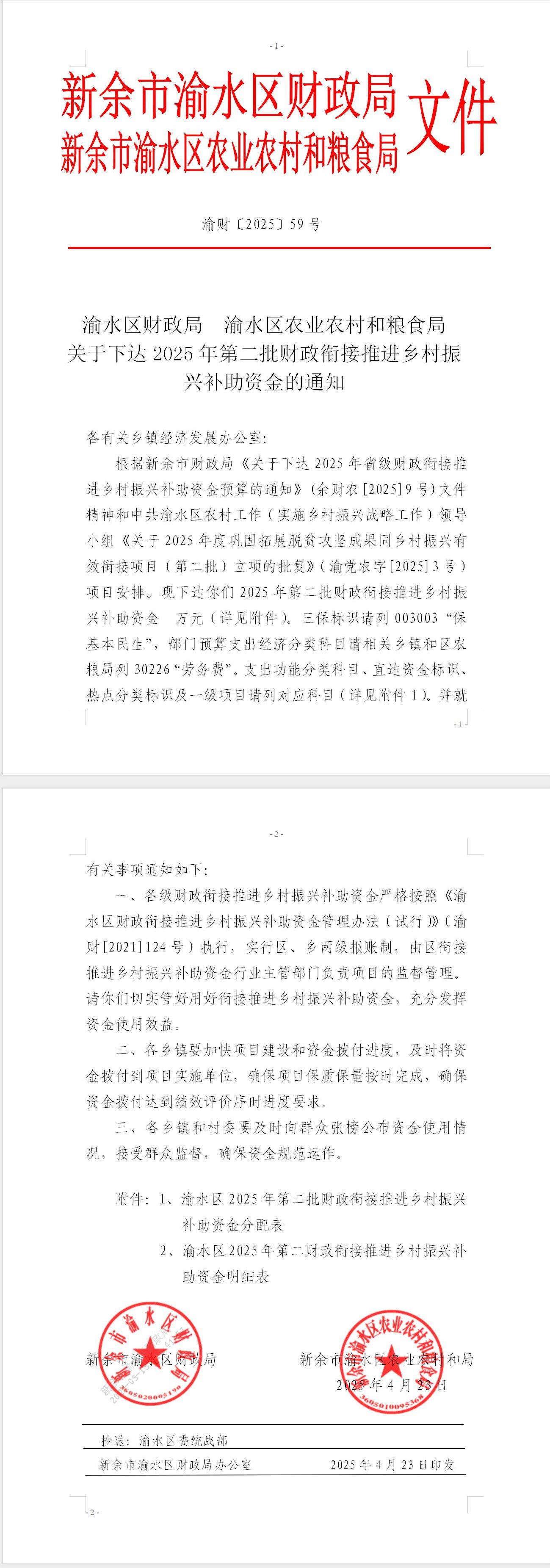 附件2:渝水區2025年第二批財政銜接推進鄉村振興補助資金明細表