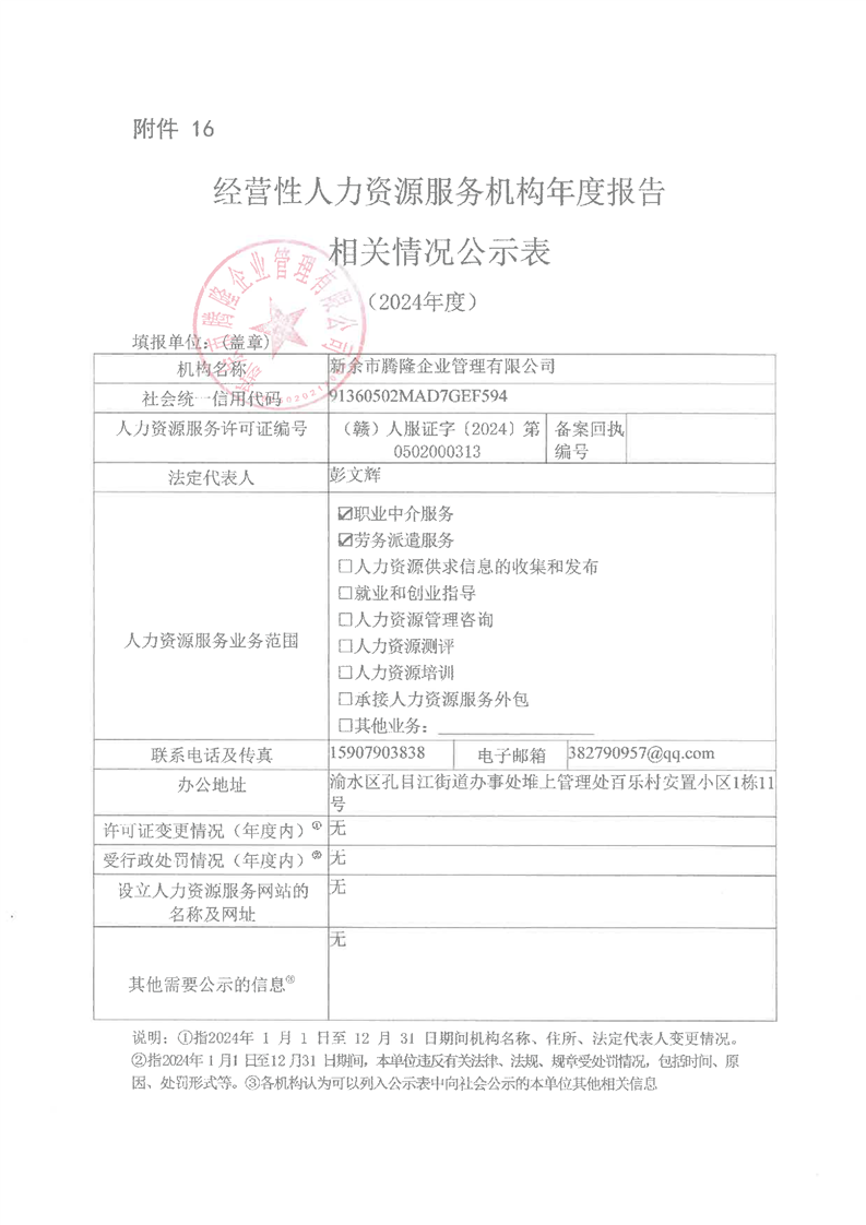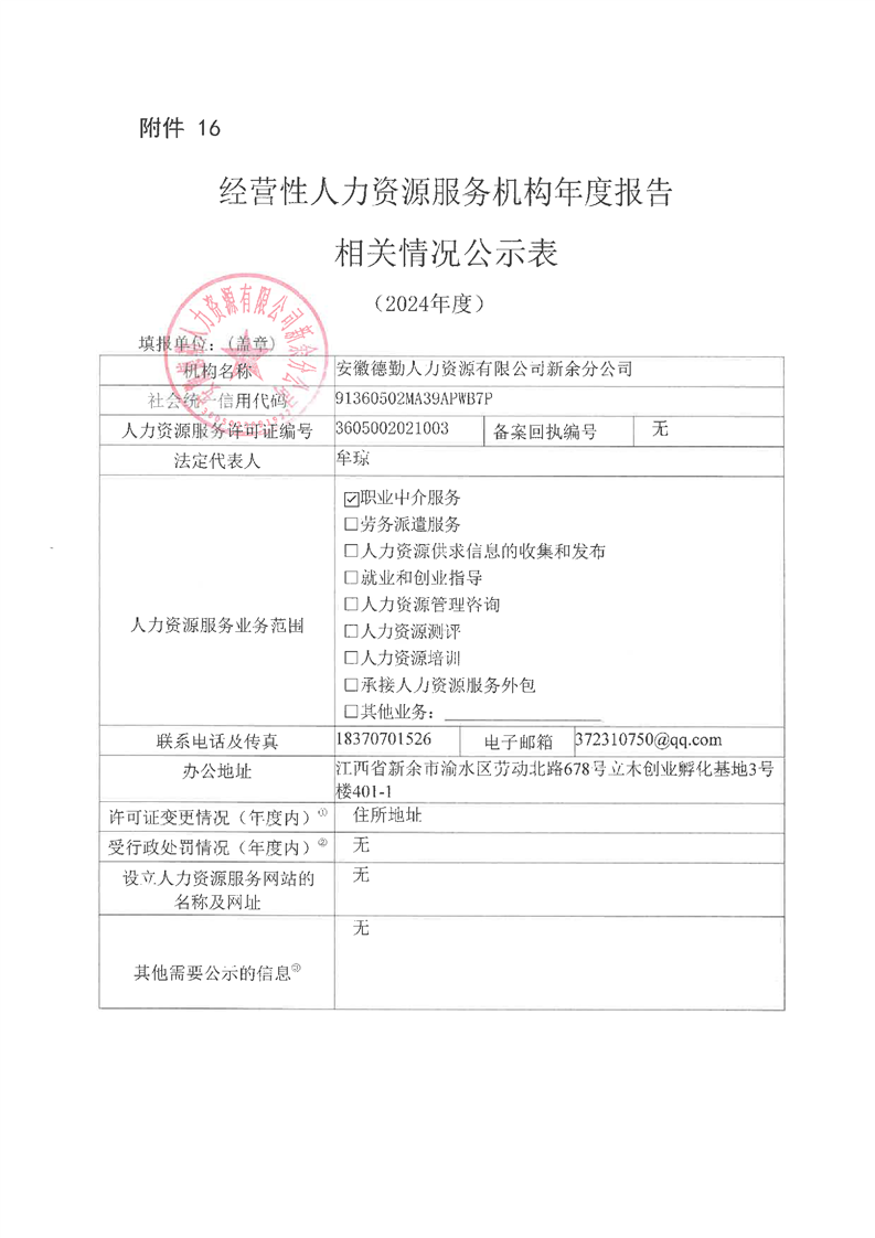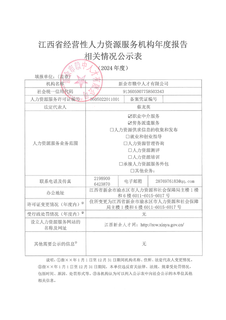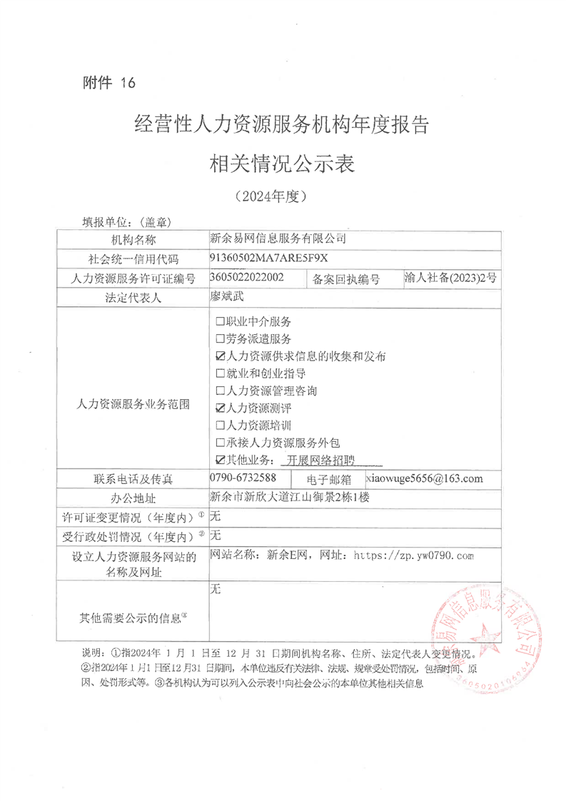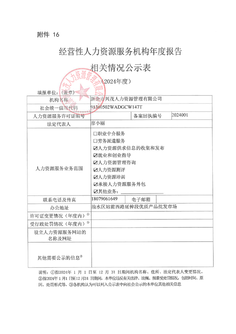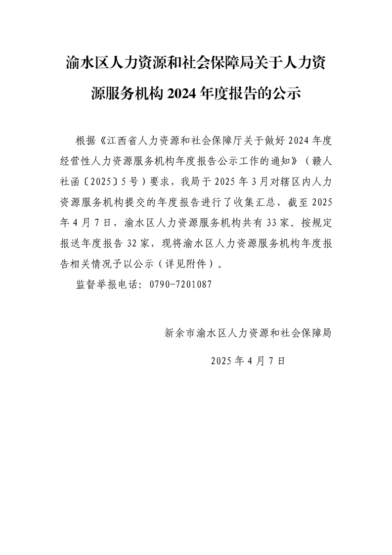 渝水區人力資源和社會保障局關于人力資源服務機構2024年度報告的公示
