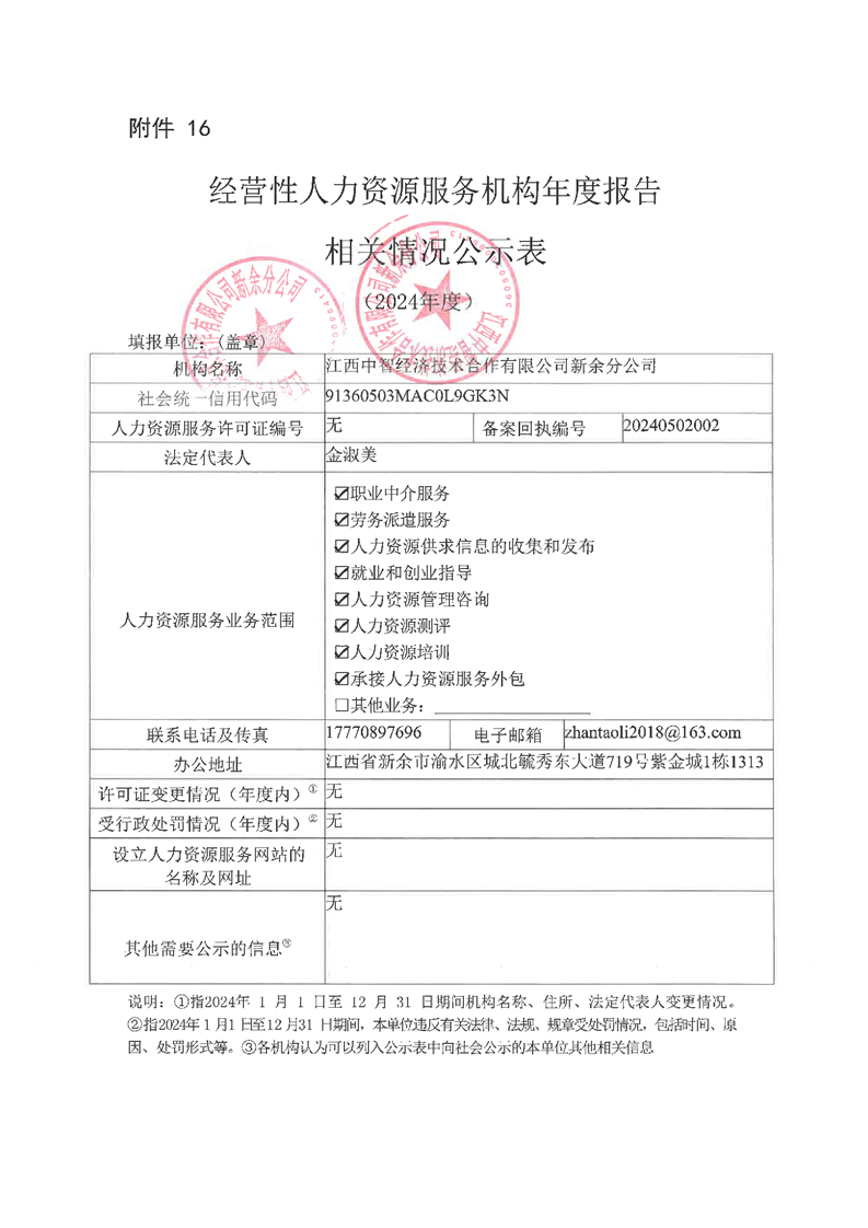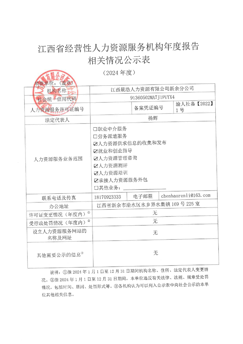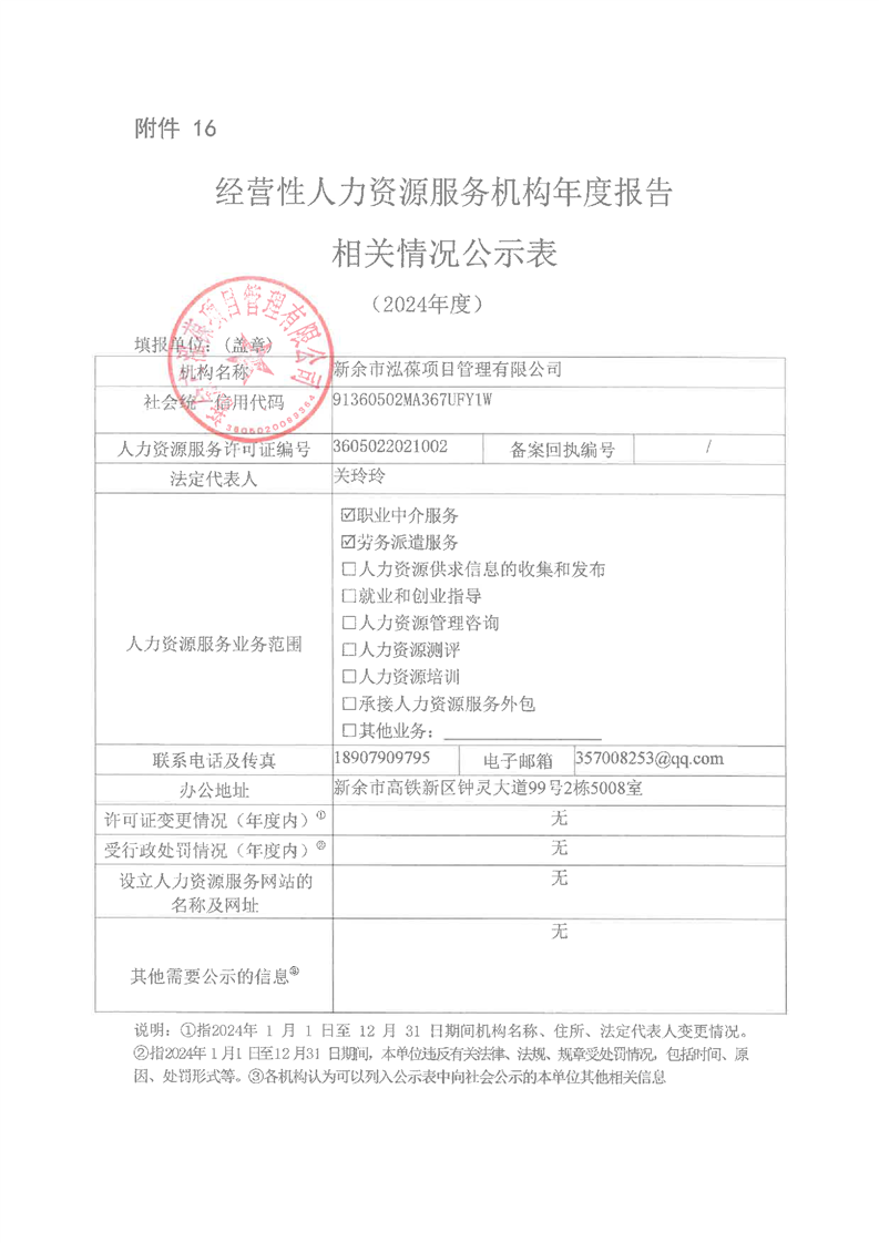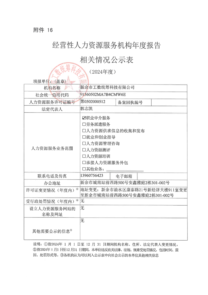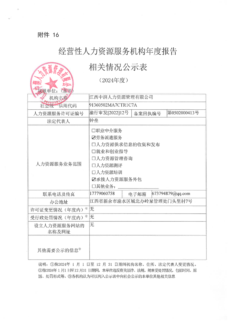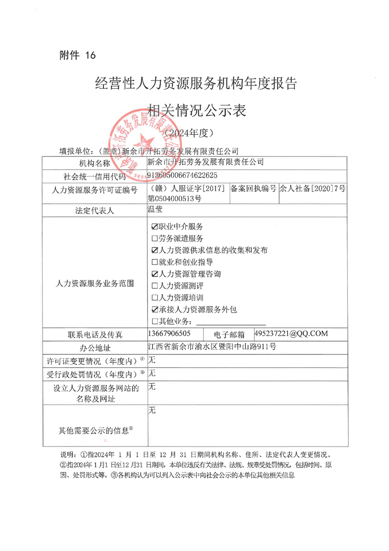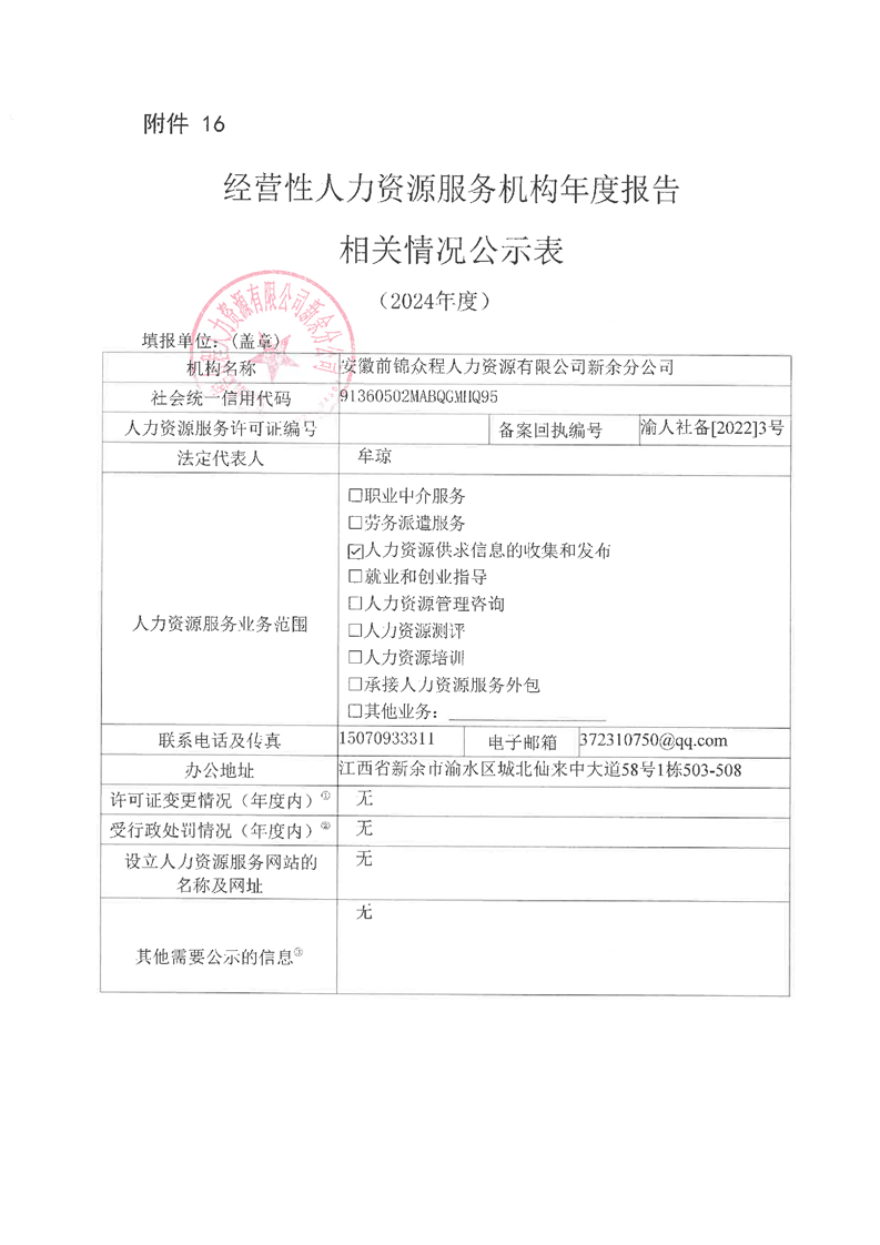 渝水區人力資源和社會保障局關于人力資源服務機構2024年度報告的公示