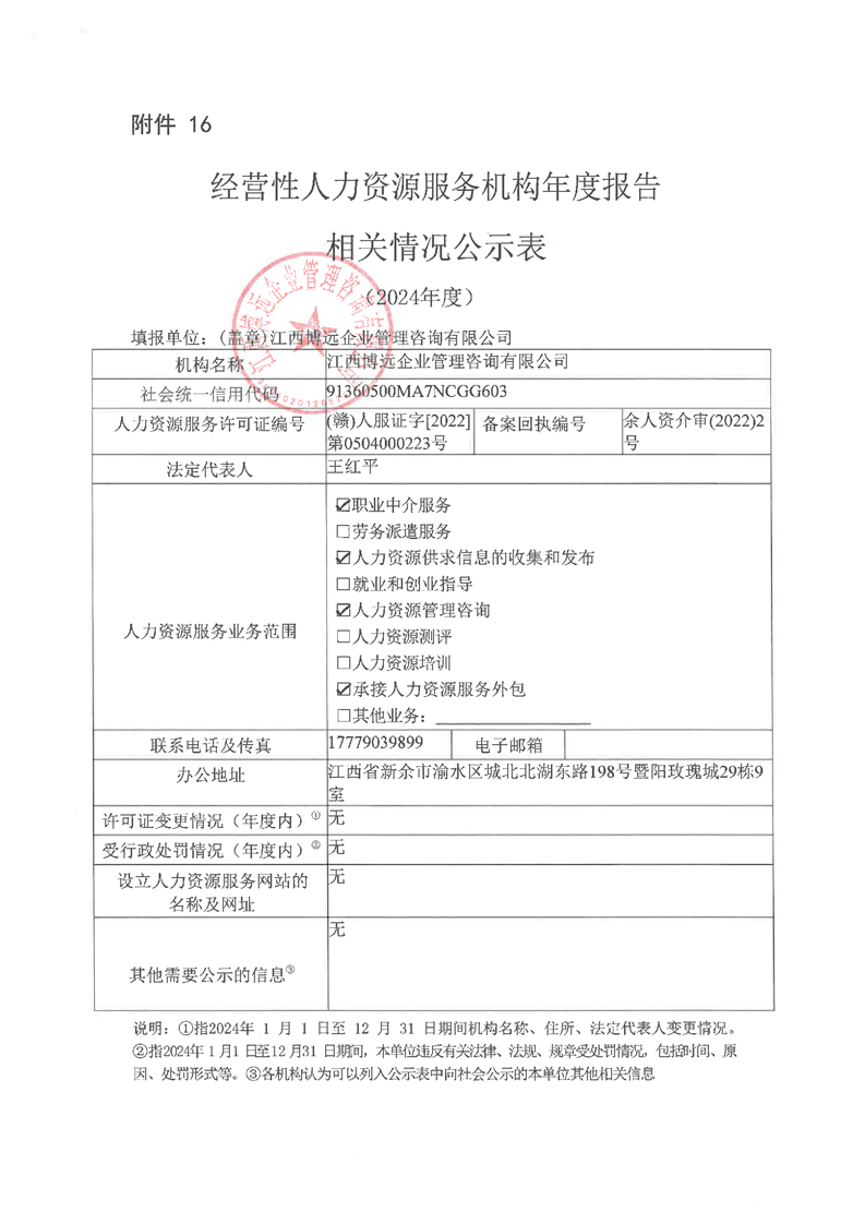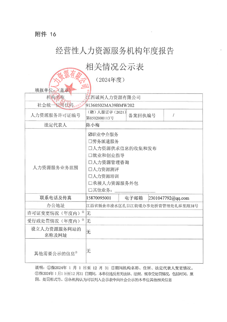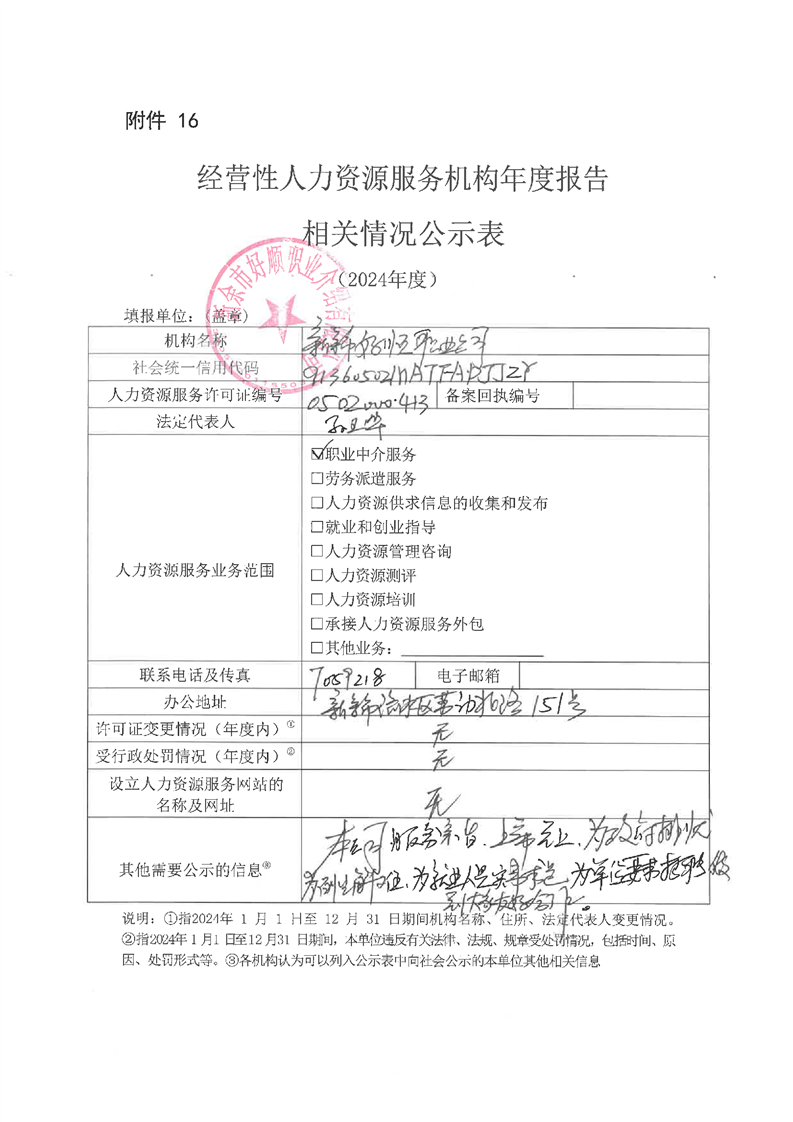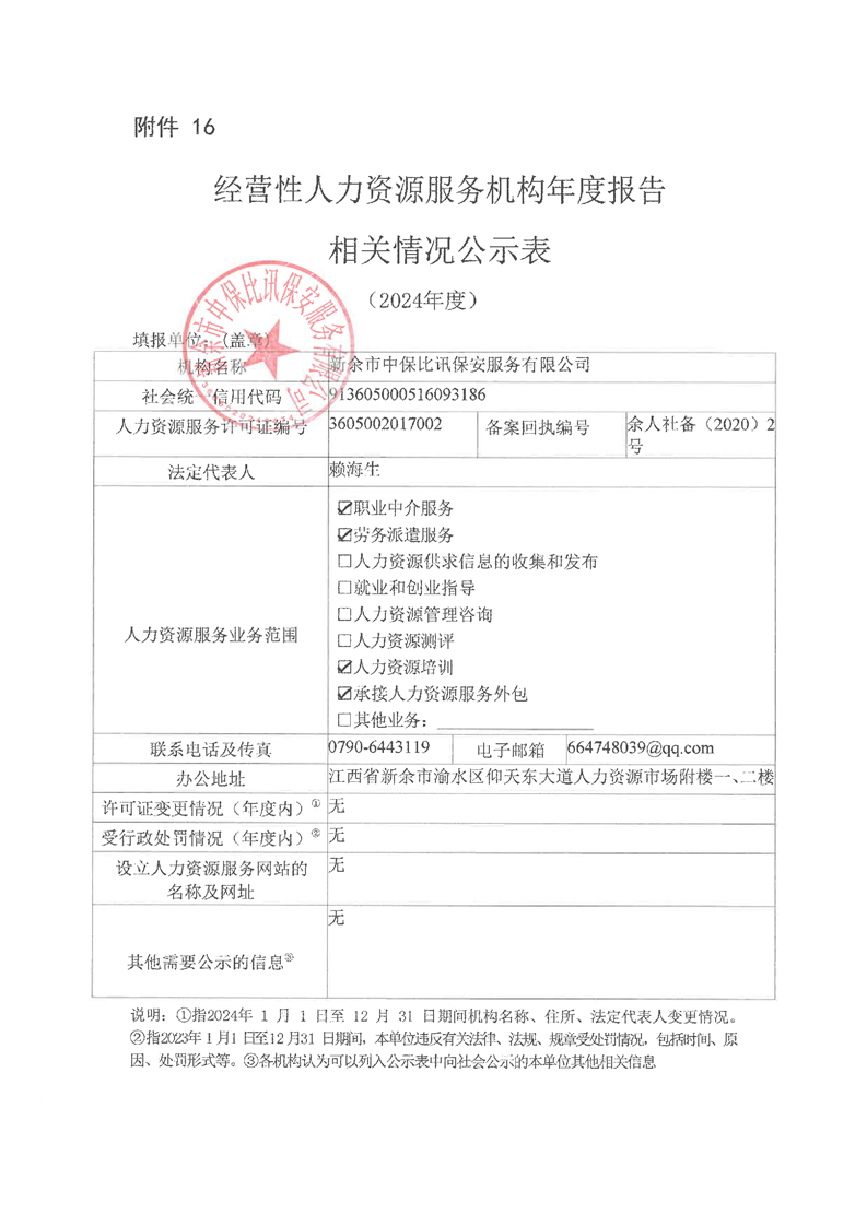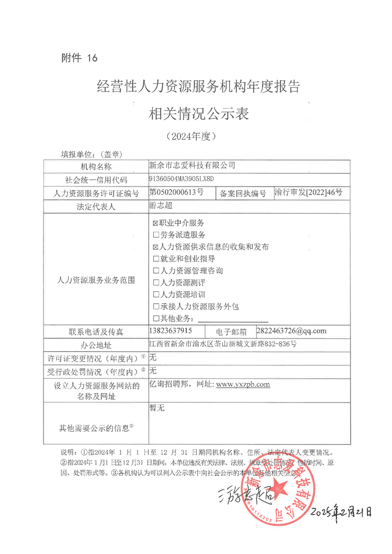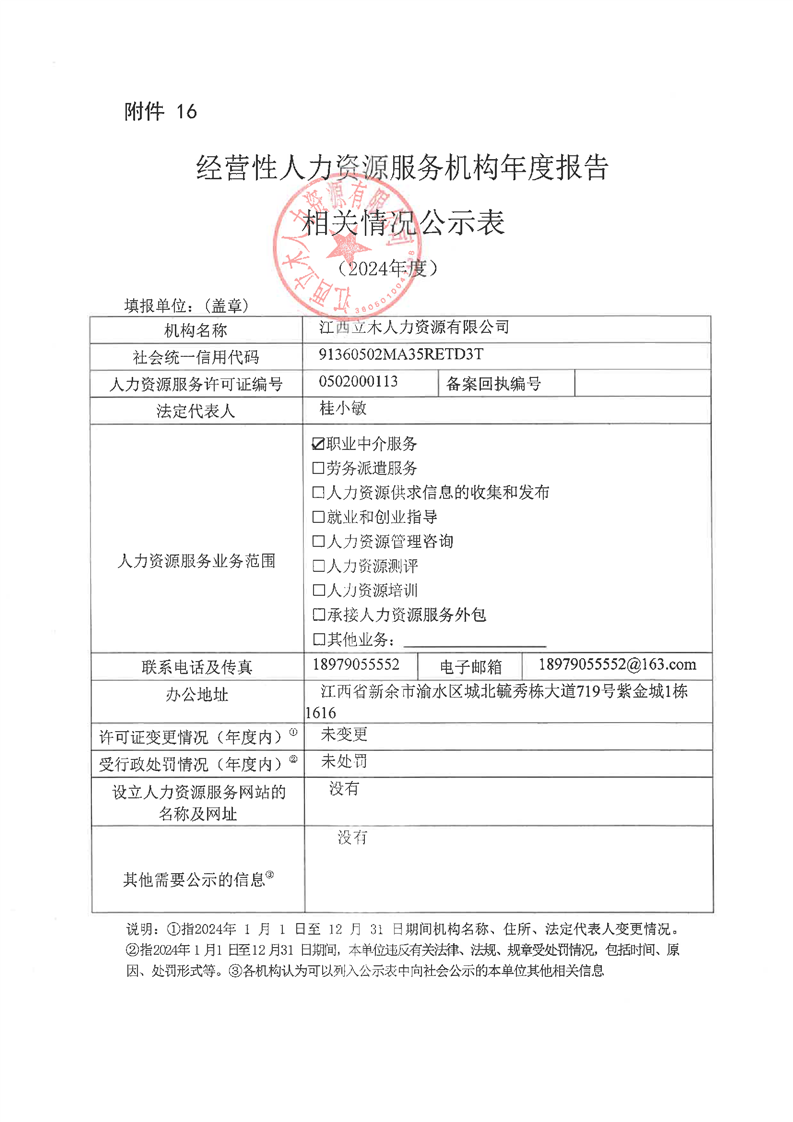渝水區人力資源和社會保障局關于人力資源服務機構2024年度報告的公示