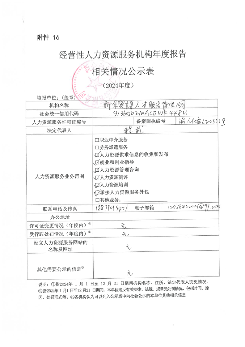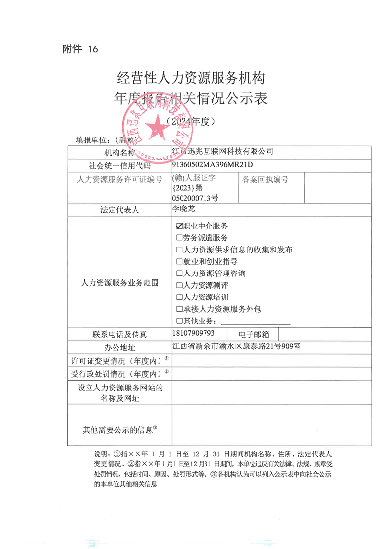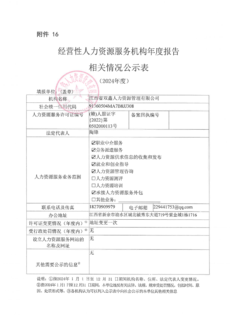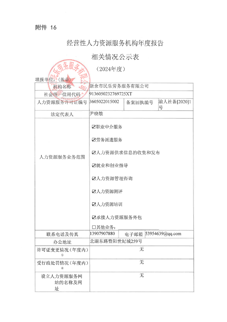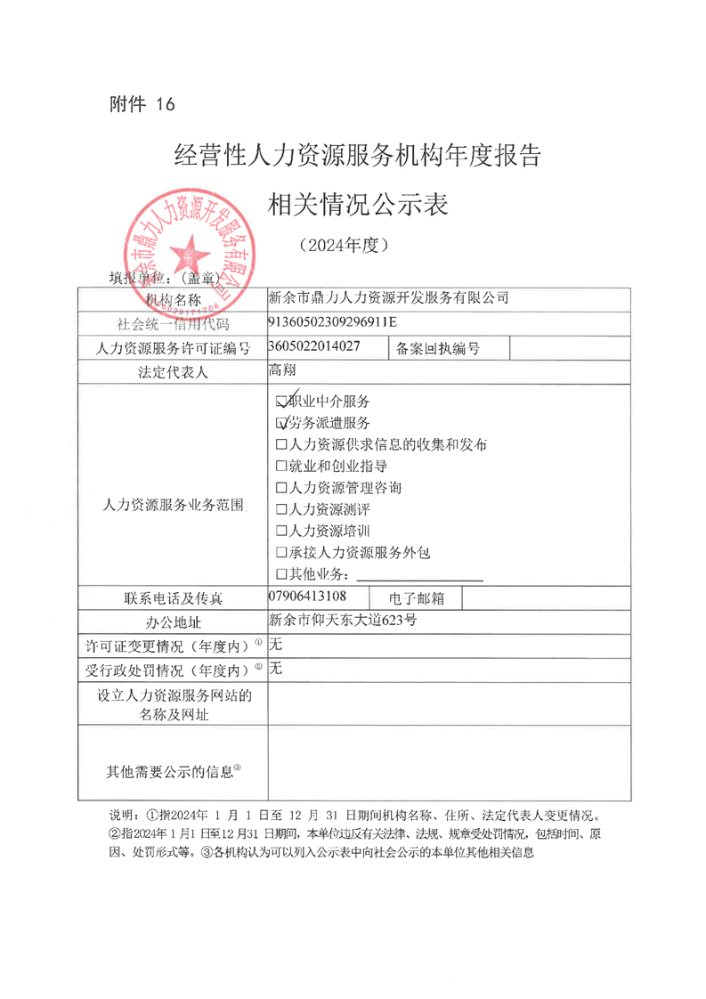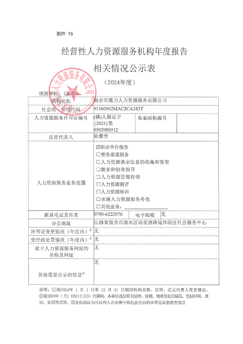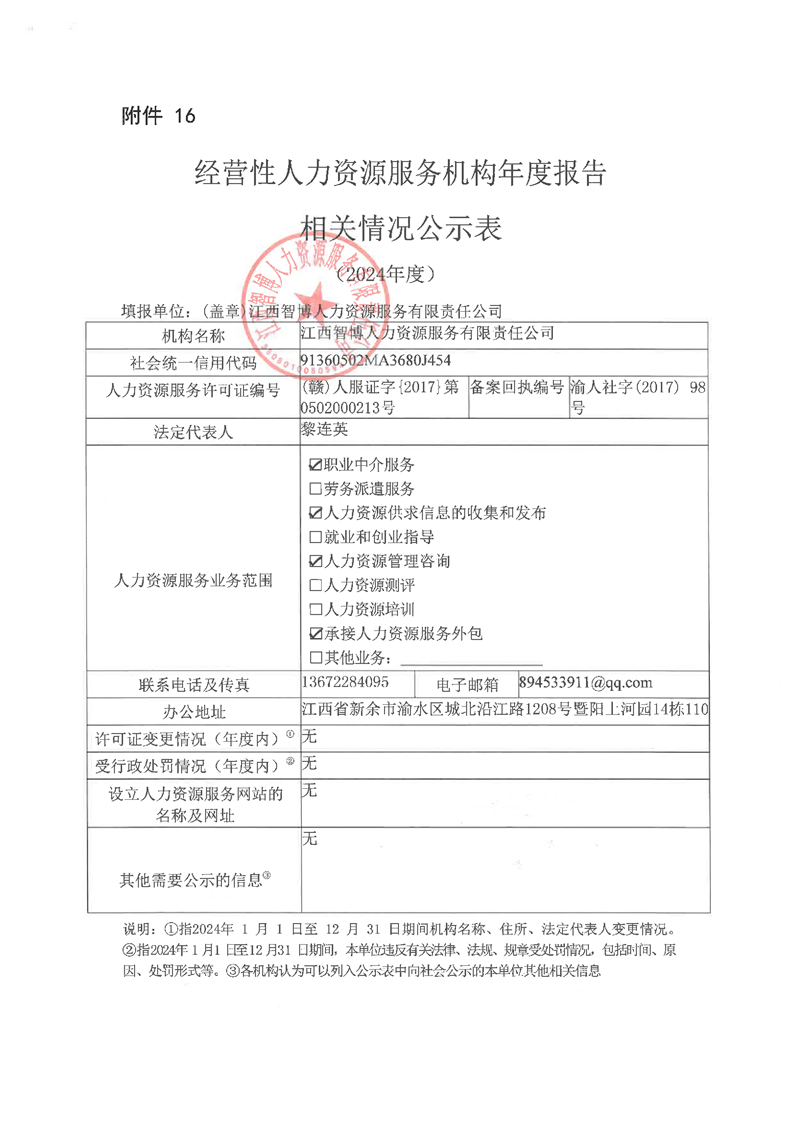 渝水區人力資源和社會保障局關于人力資源服務機構2024年度報告的公示