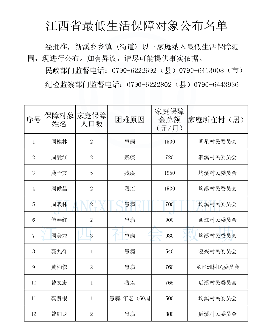 新溪鄉城鄉低保公示名單(9.1)