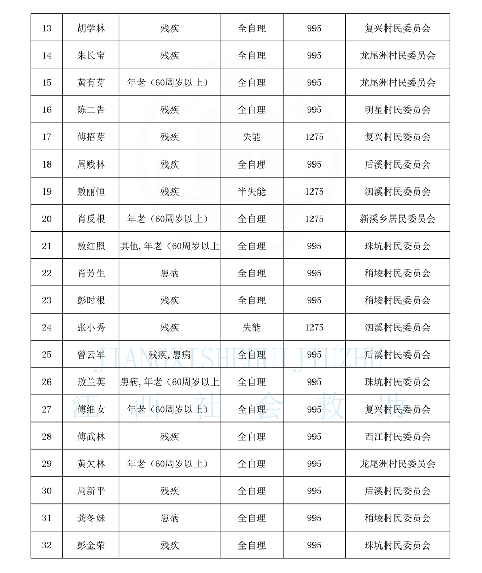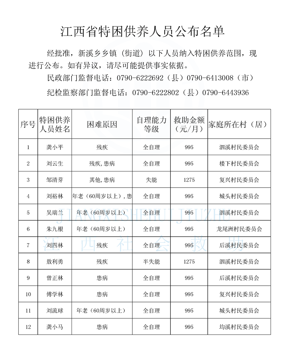 新溪鄉城鄉特困供養公布名單(10.10)
