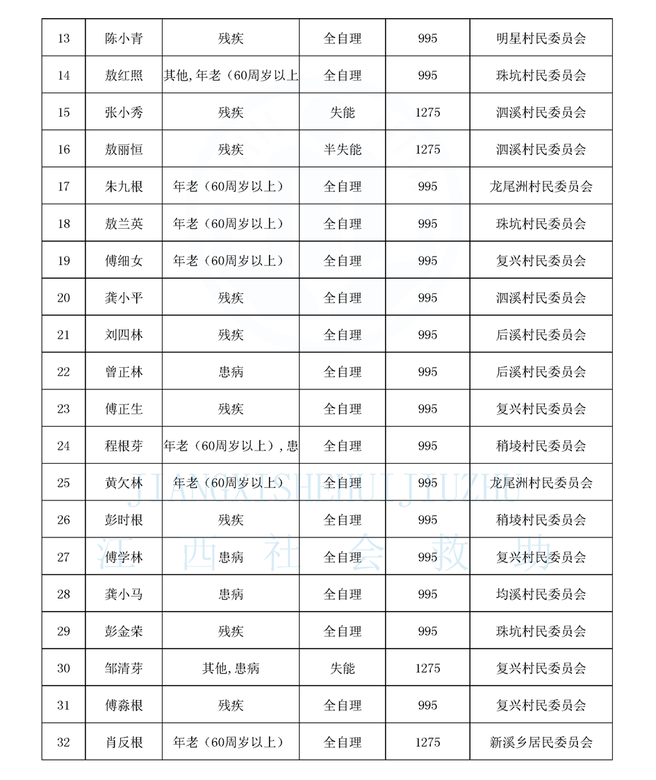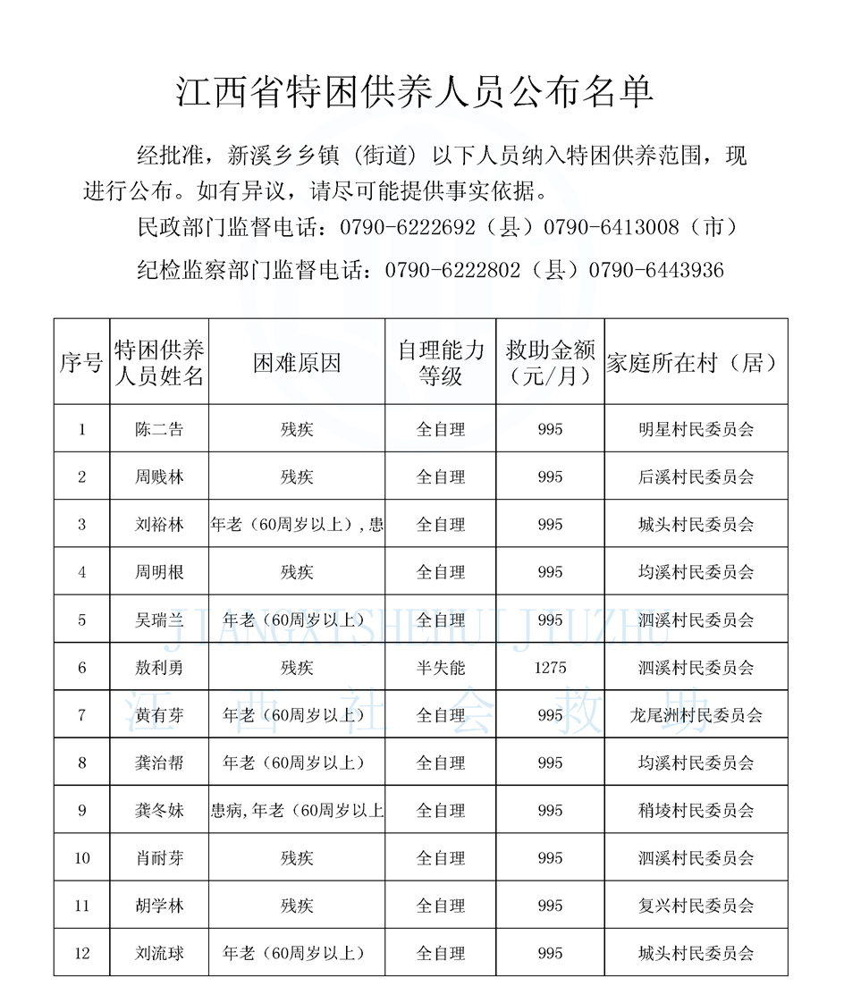 新溪鄉(xiāng)特困供養(yǎng)公示名單(4.3)