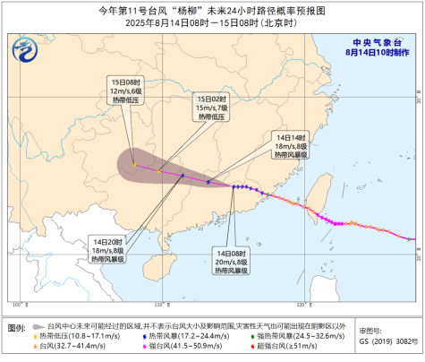 摘要:本期材料與8月13日報送的《氣象災(zāi)害預警服務(wù)快報》相比,增加了臺風風雨影響實況,滾動更新了臺風路徑和風雨影響預報信息。預計14日至15日,廣東、廣西、江西南部、湖南南部、貴州等地部分地區(qū)有暴雨或大暴雨,局地特大暴雨;福建南部沿海、廣東東部沿海、臺灣海峽南部海域風力8級、陣風9~10級。廣東、廣西、江西、湖南、貴州等地關(guān)注持續(xù)強降雨疊加影響,需做好次生災(zāi)害防御及交通、暑期旅游和城市運行的安全管理工作,福建、廣東沿海地區(qū)注意防范大風影響。