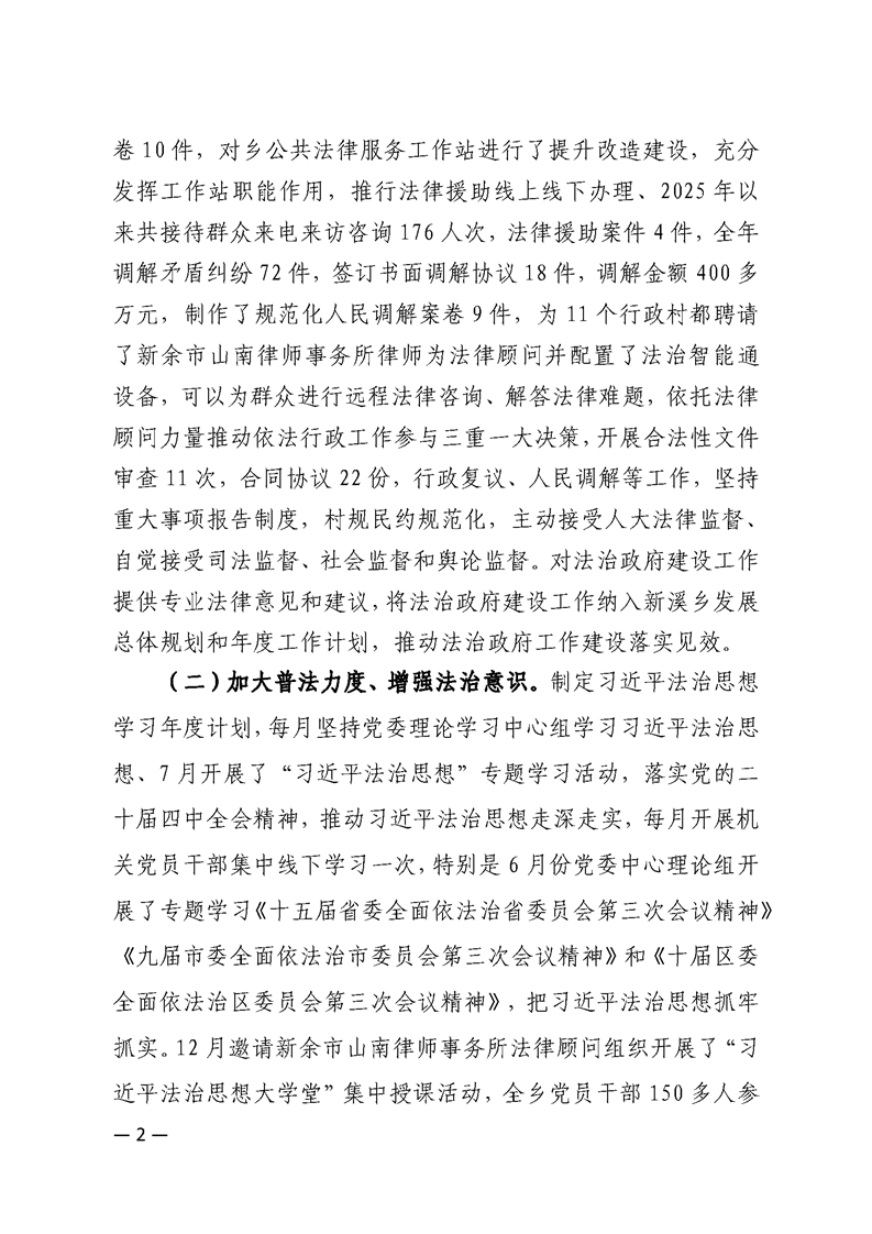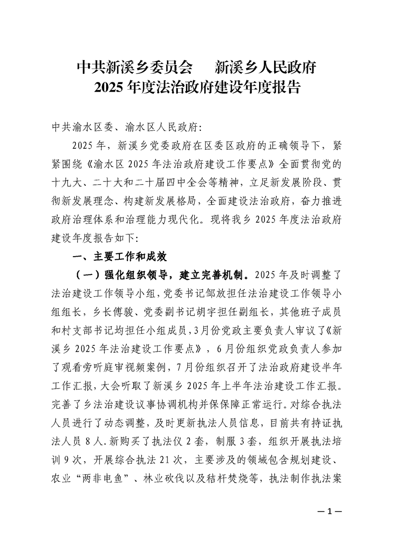 新溪鄉(xiāng)2025年度法治政府建設(shè)年度報(bào)告