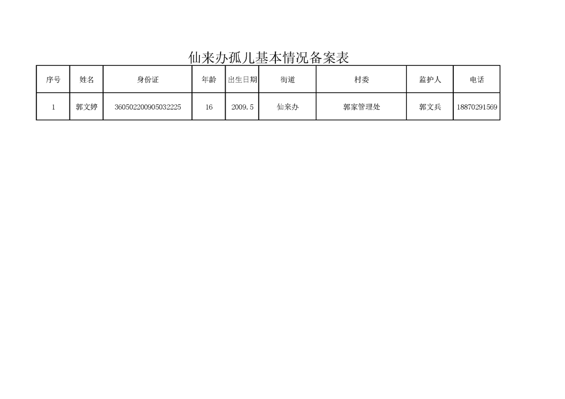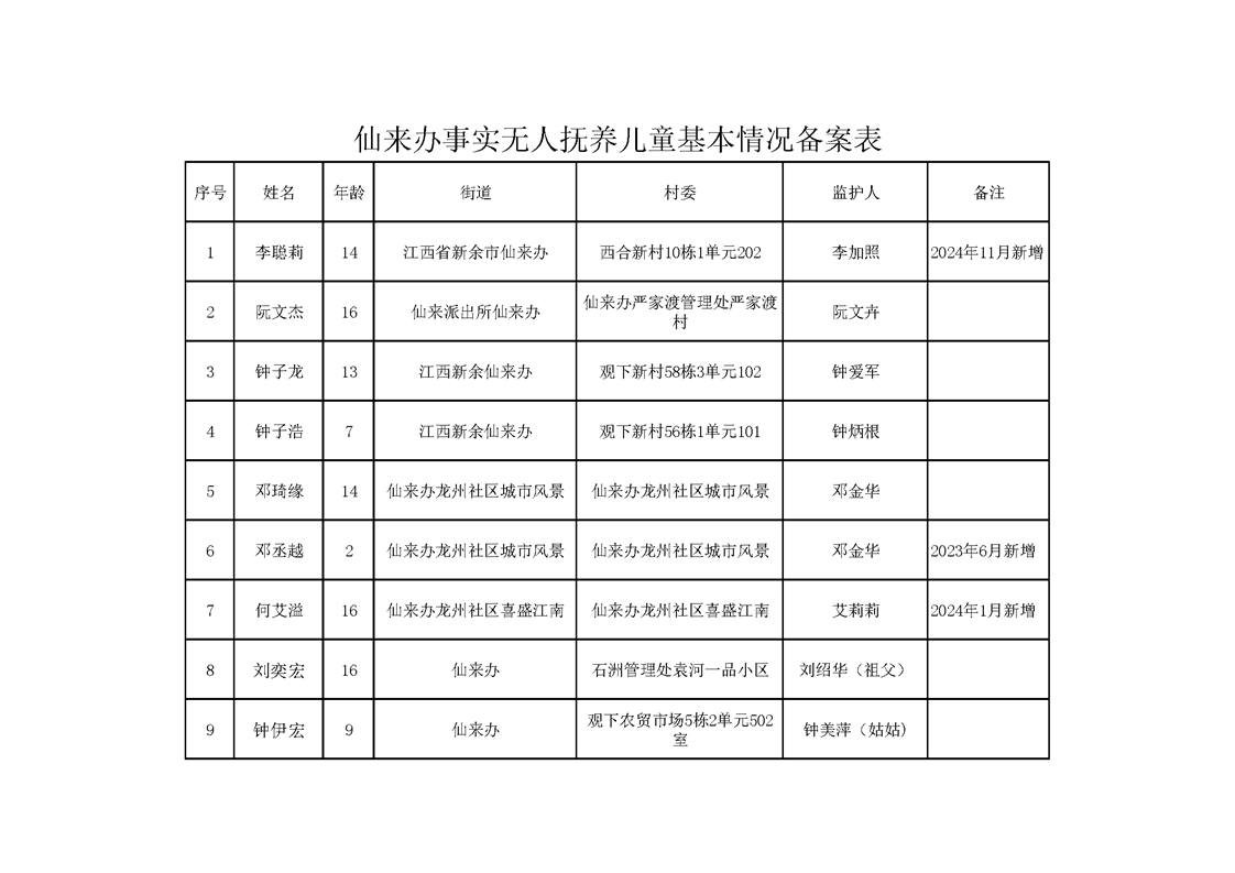 仙來辦事實無人撫養兒童基本情況備案表