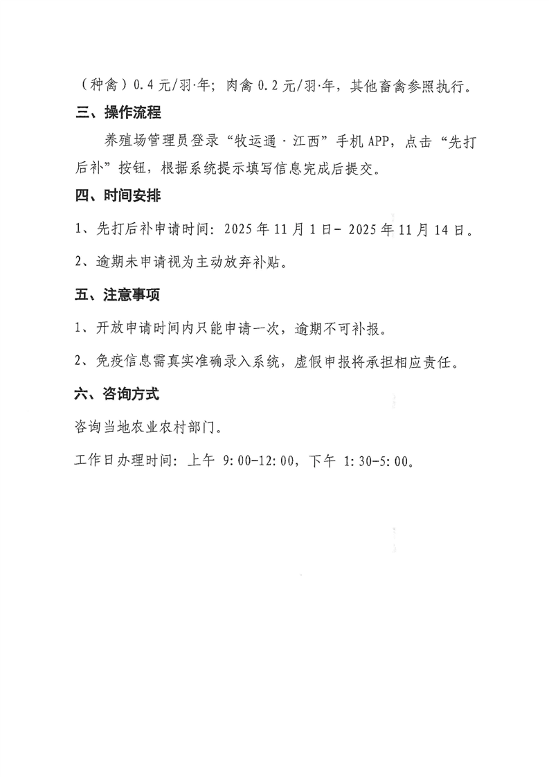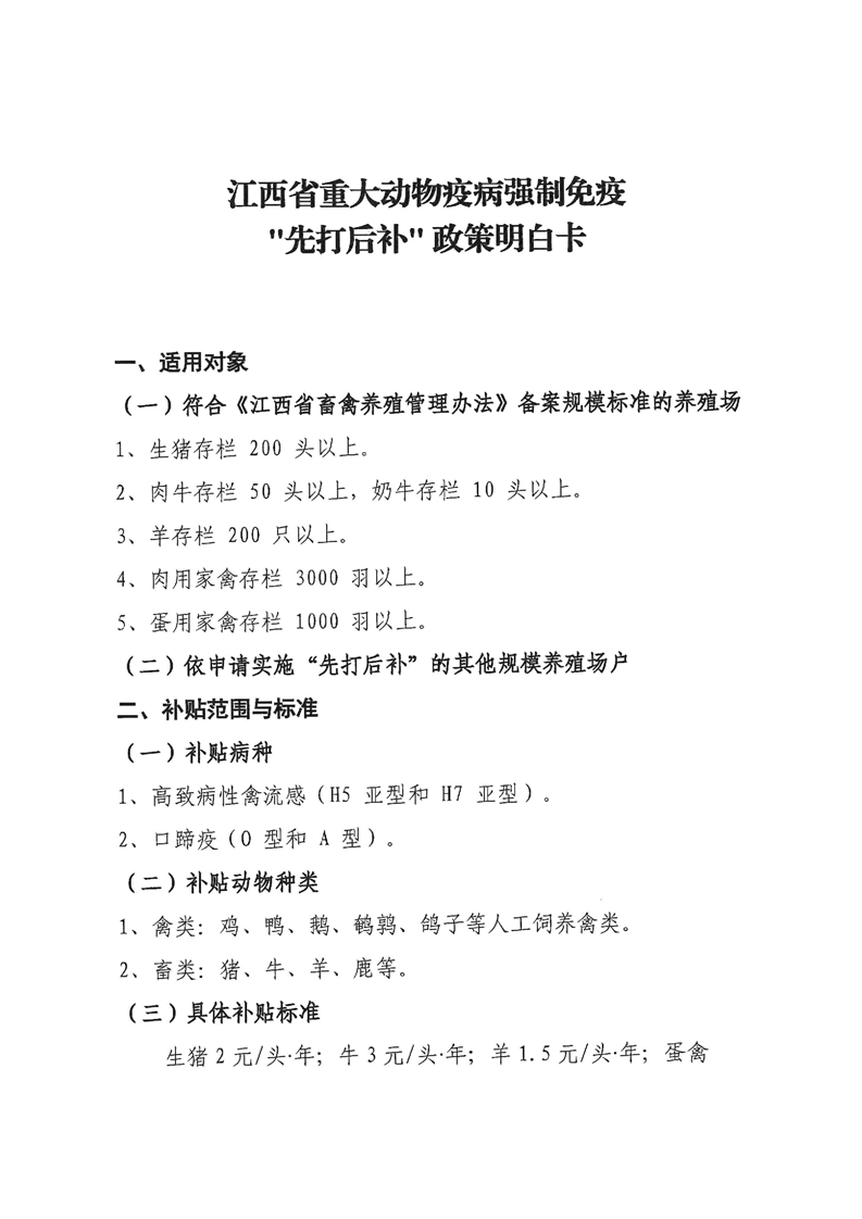 江西省重大動物疫病強制免疫"先打后補”政策明白卡