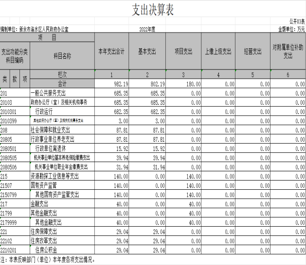 本部門2022年度支出總計982.19萬元,其中本年支出合計982.19萬元,較2021年減少140.80萬元,下降12.54%,主要原因是還有部分未支付款項;年末結轉和結余0萬元,較2021年無變化,主要原因是年末結轉和結余財政全部收回。