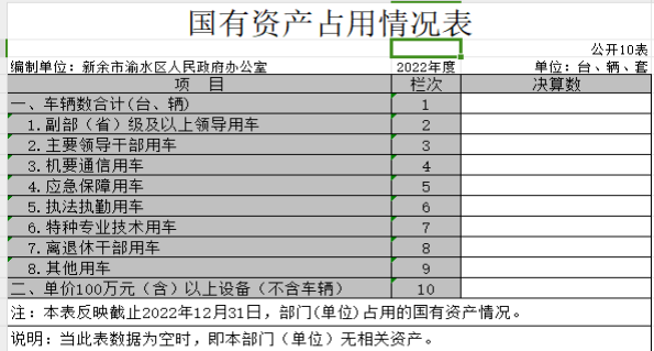 截止2022年12月31日,本部門(單位)國有資產占用情況見公開10表《國有資產占用情況表》。本部門共有車輛0輛。單位價值50萬元以上通用設備0臺(套);單位價值100萬元以上專用設備0臺(套)。