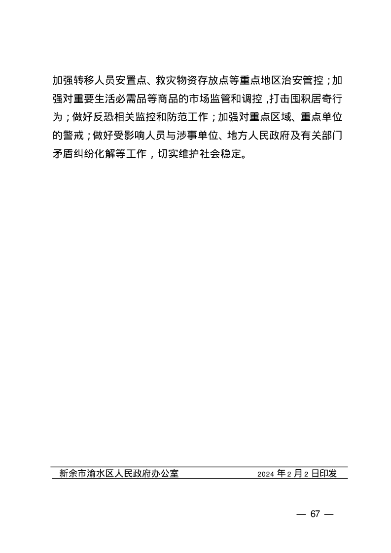 渝府辦發【2024】4號 渝水區人民政府辦公室關于印發《渝水區突發事件能源保障應急預案》等3個專項應急預案的通知