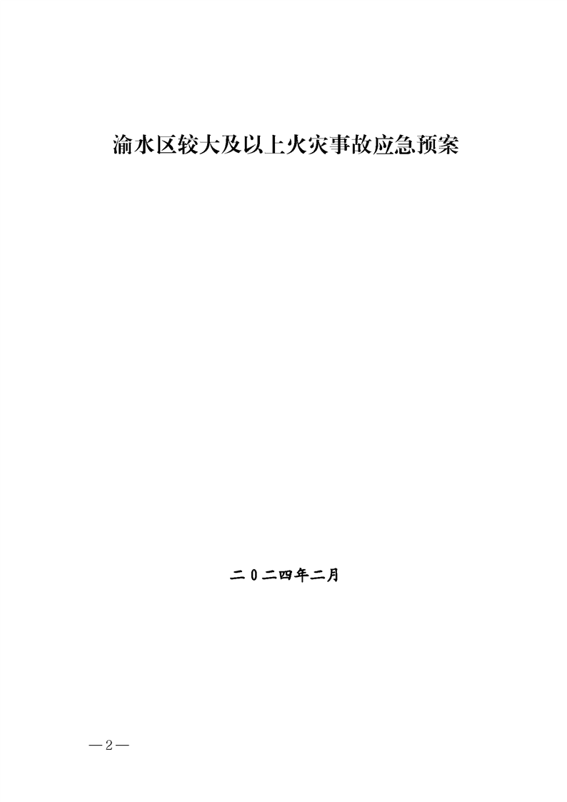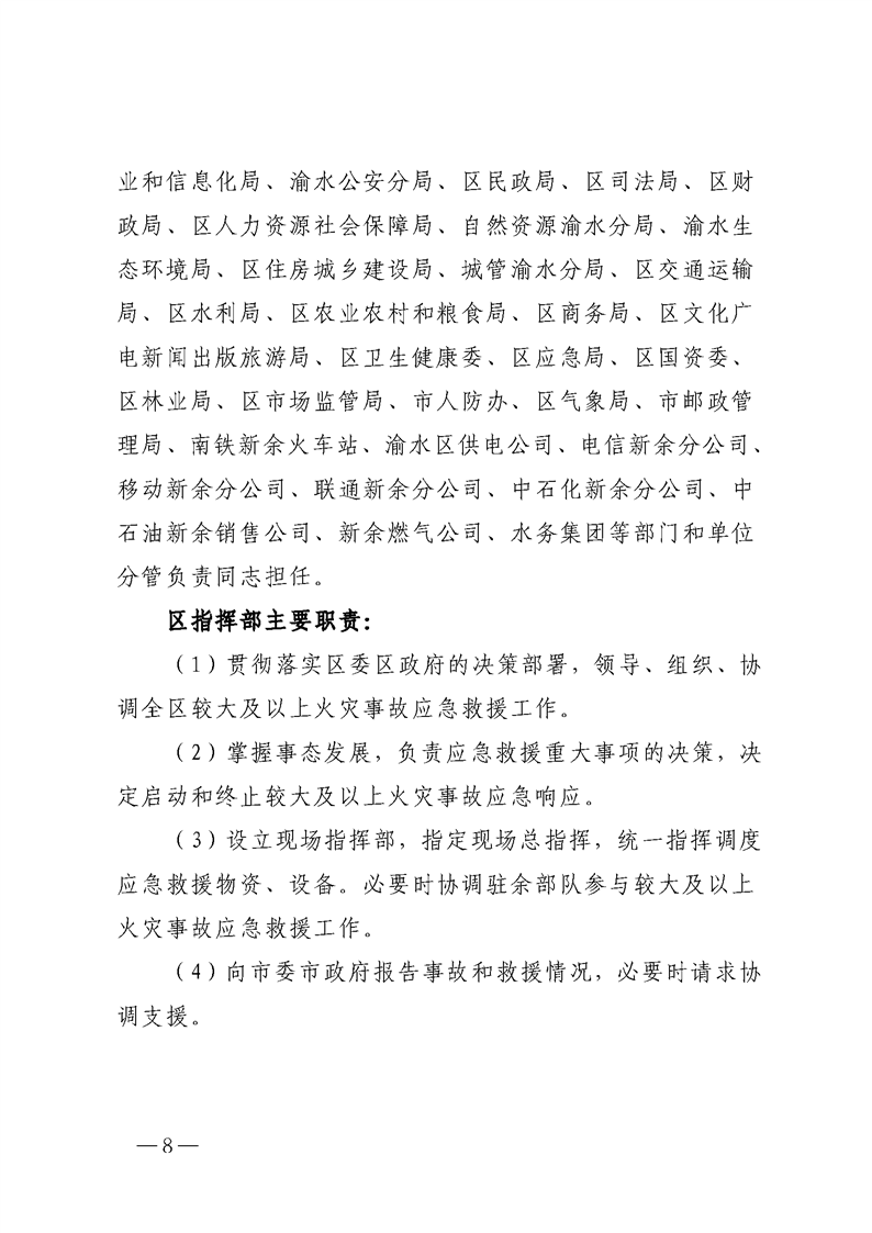 渝府辦發【2024】10號 渝水區人民政府辦公室關于印發《渝水區較大及以上火災事故應急預案》的通知