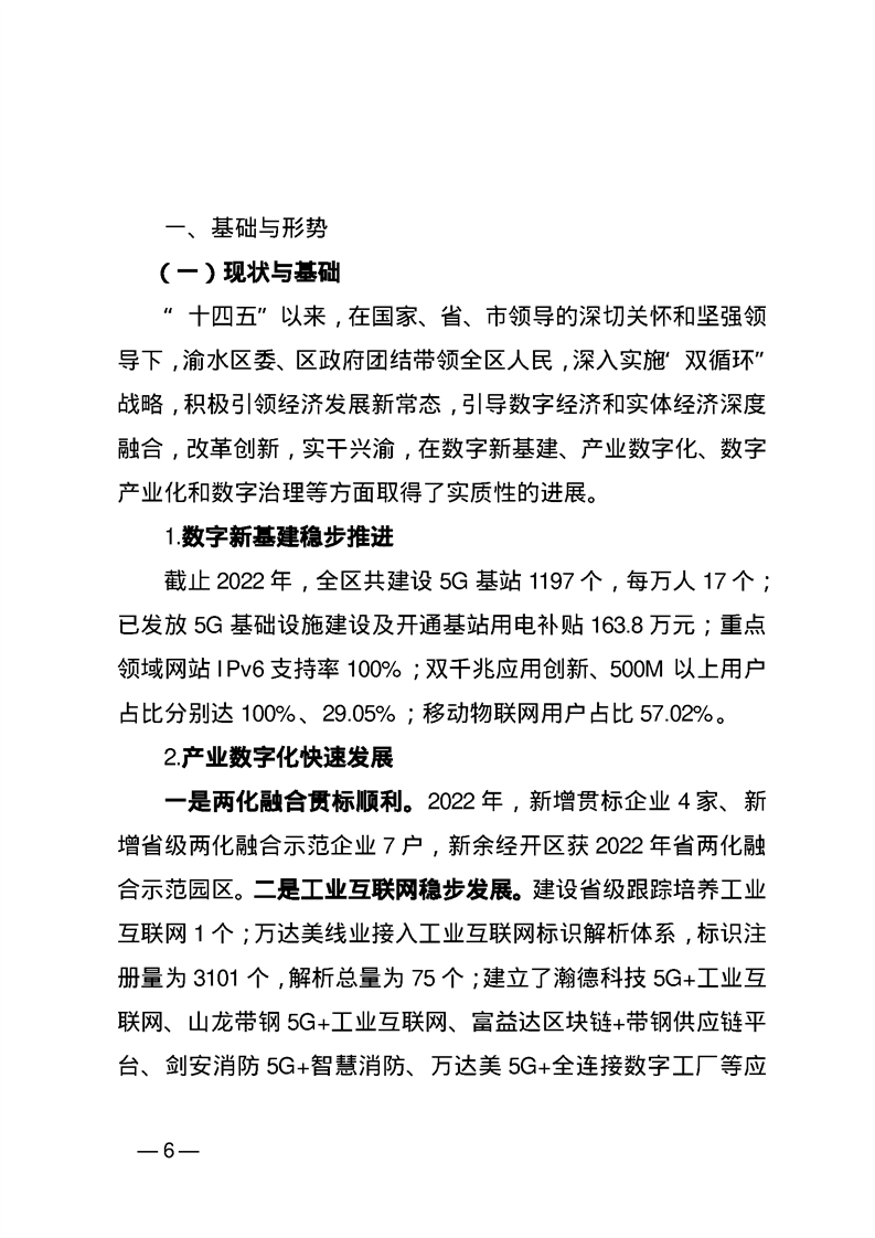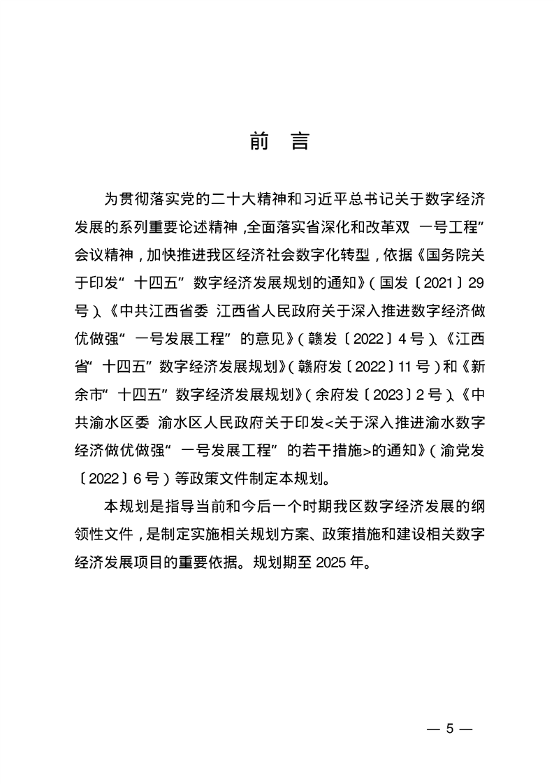 渝府發[2023] 29號 渝水區人民政府關于印發渝水區“十四五” 數字經濟發展規劃(2023—2025)的通知