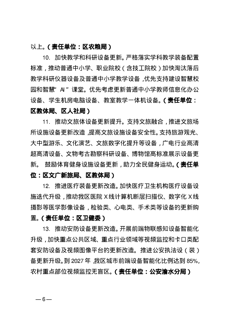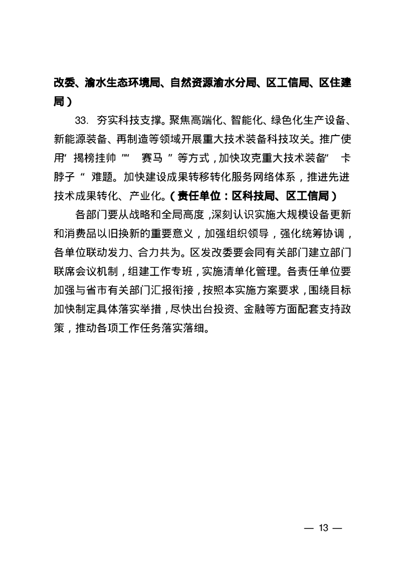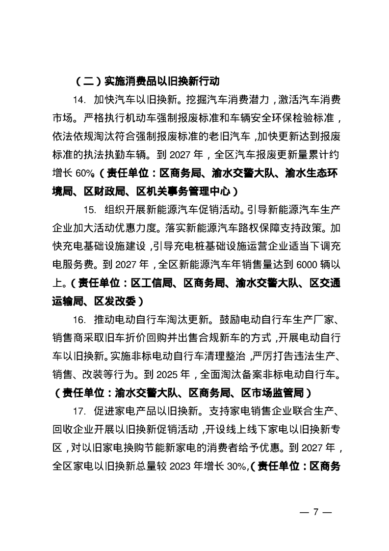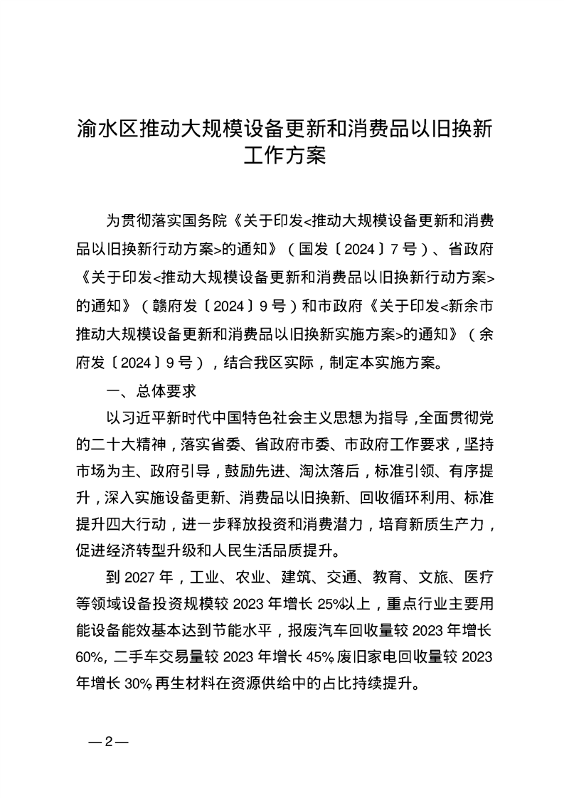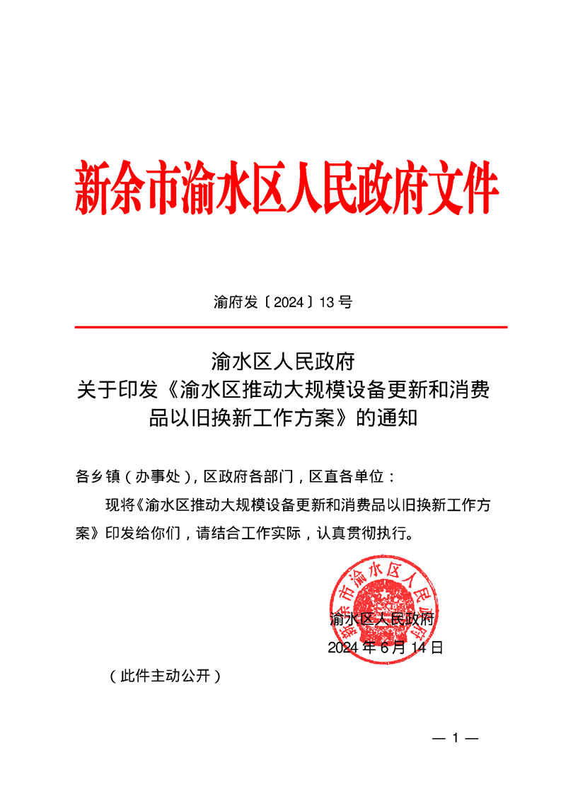 渝府發〔2024〕13 號 渝水區人民政府關于印發《渝水區推動大規模設備更新和消費品以舊換新工作方案》的通知