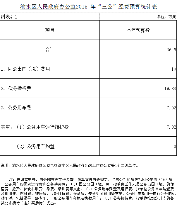 渝水區(qū)政府辦2015 年“三公”經(jīng)費(fèi)預(yù)算統(tǒng)計(jì)表