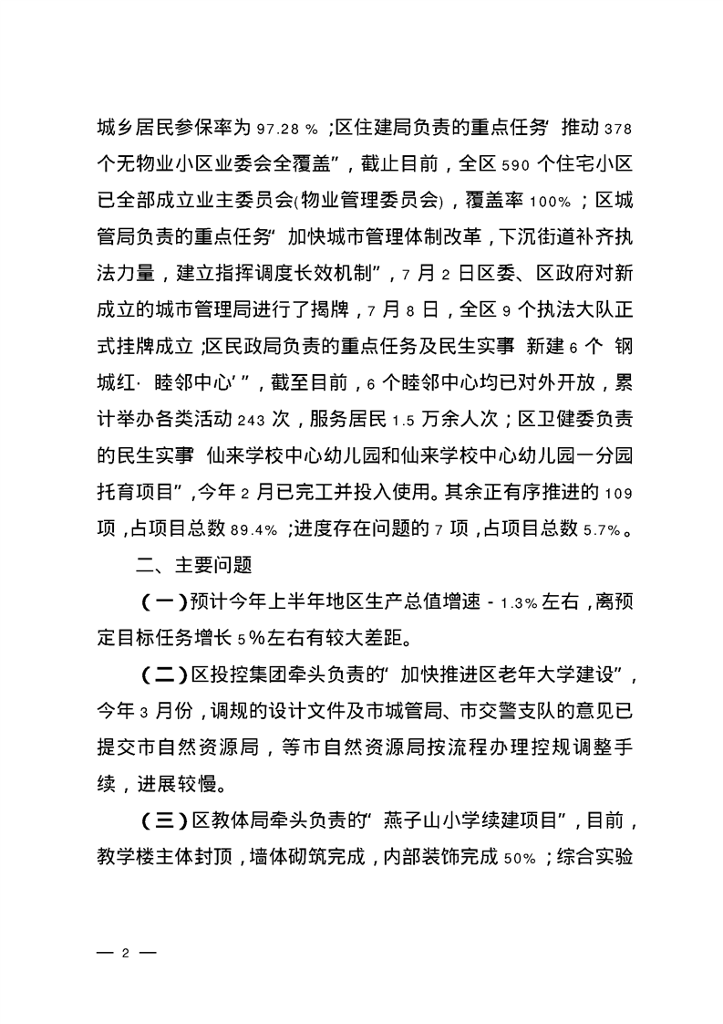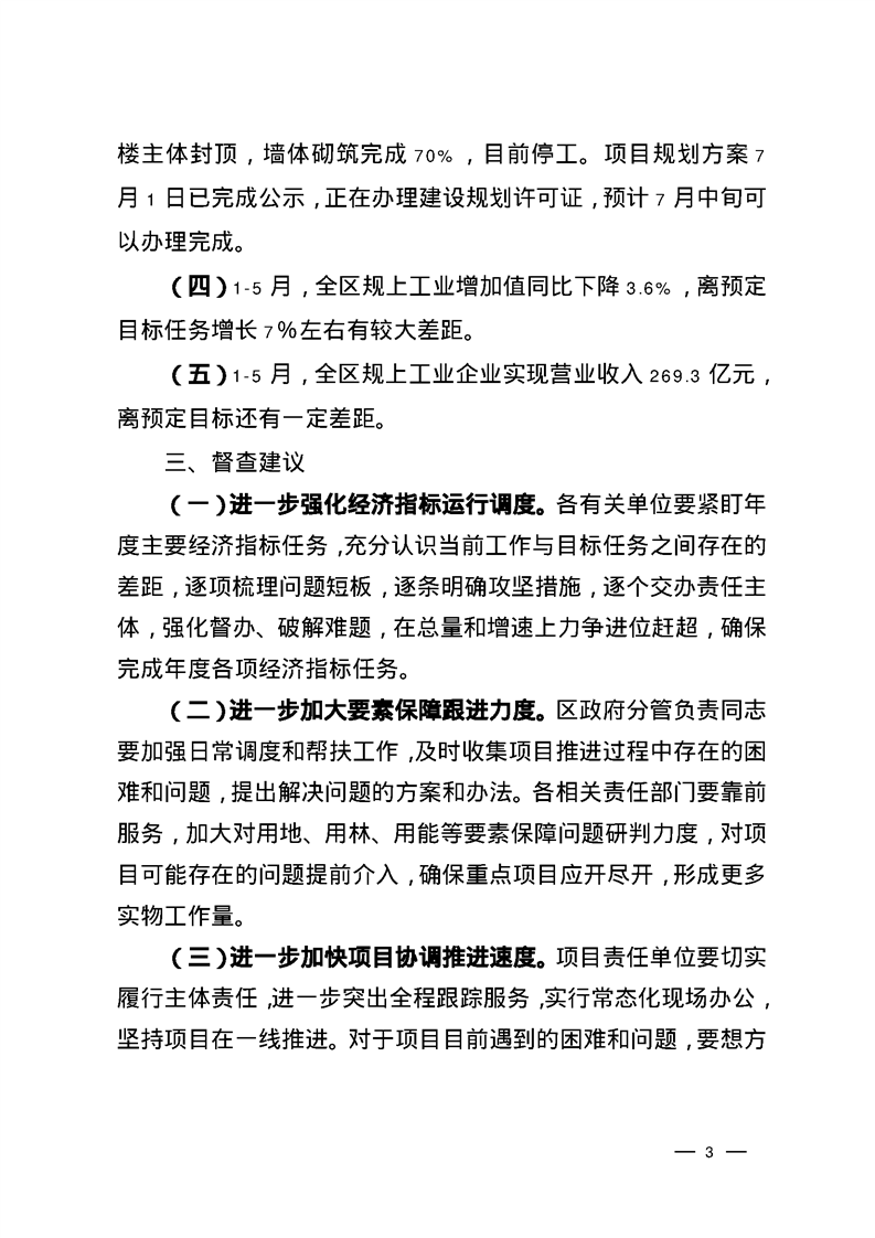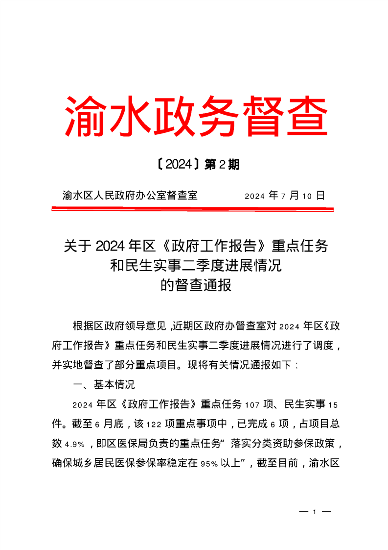 關(guān)于2024年區(qū)《政府工作報(bào)告》重點(diǎn)任務(wù)和民生實(shí)事二季度進(jìn)展情況的督查通報(bào)