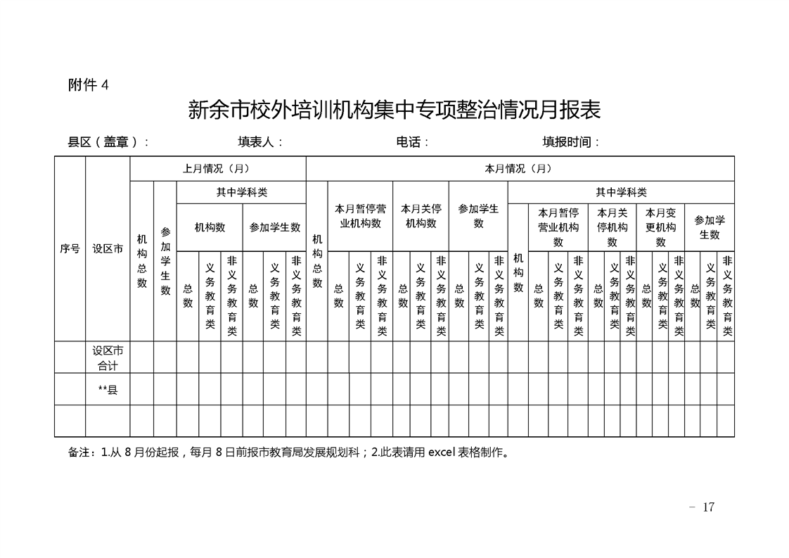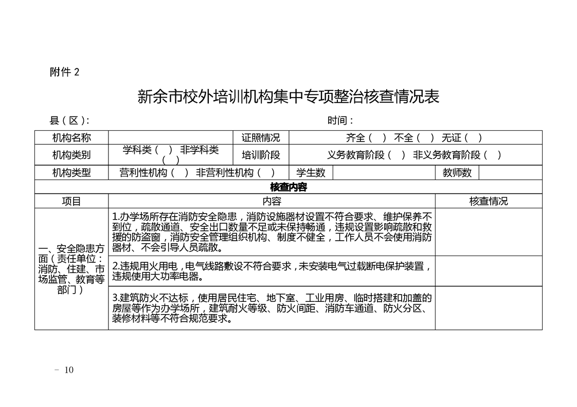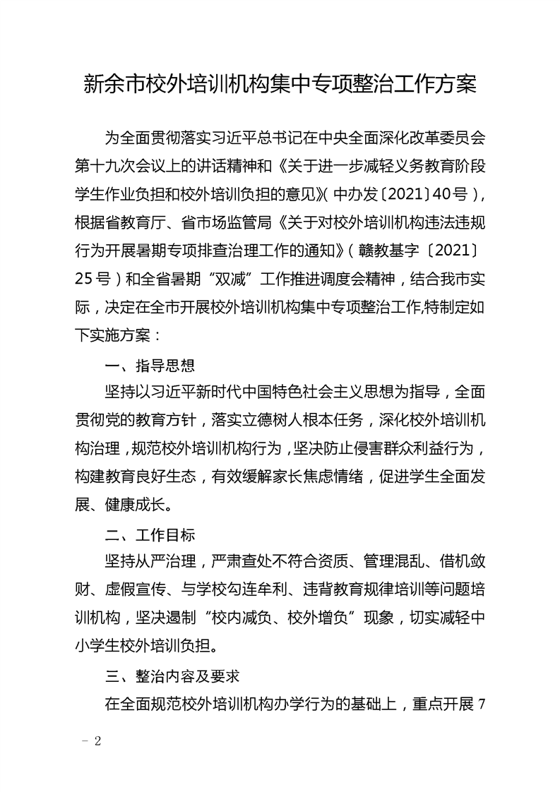 關(guān)于下發(fā)新余市校外培訓(xùn)機構(gòu)集中專項整治工作方案的通知