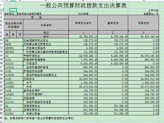 渝水生態(tài)環(huán)境局2020年度部門決算