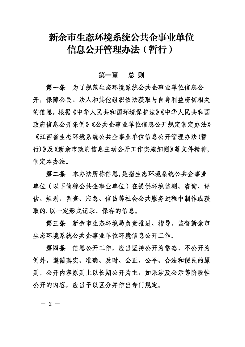 新余市生態環境系統公共企事業單位信息公開管理辦法 (暫行)