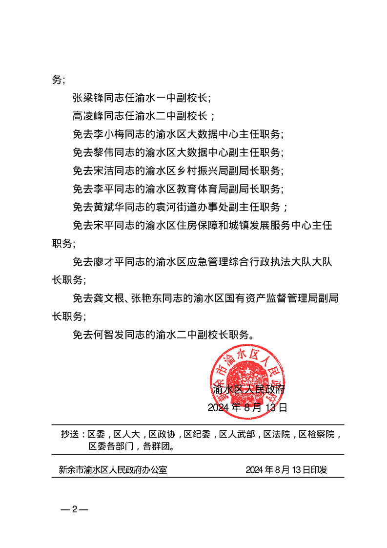 渝水區人民政府關于鄒文斌等同志職務任免的通知