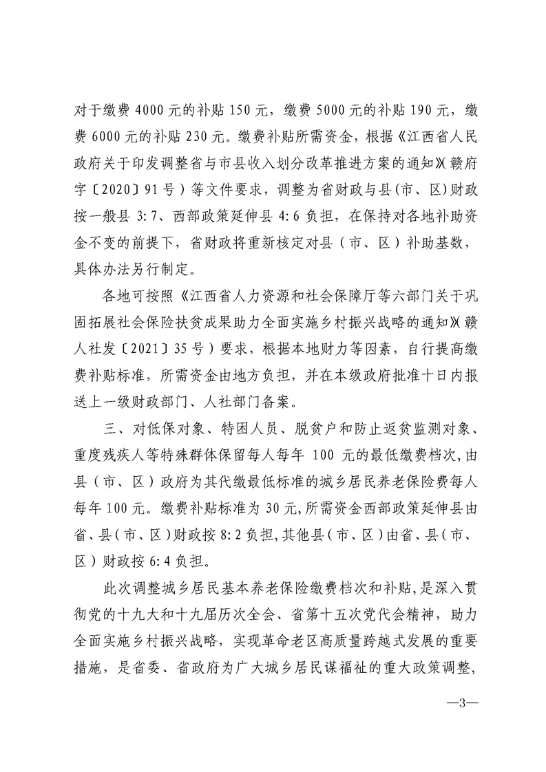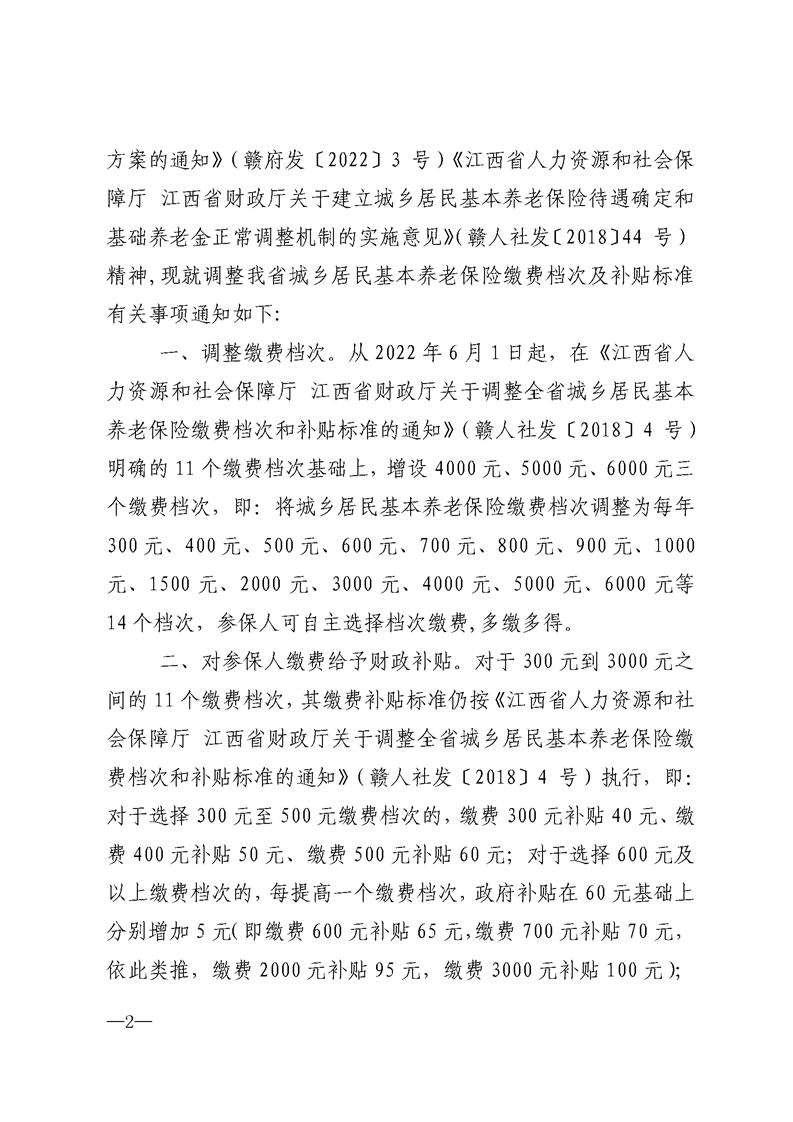 關于調整全省城鄉居民基本養老保險繳費檔次及補貼標準的通知