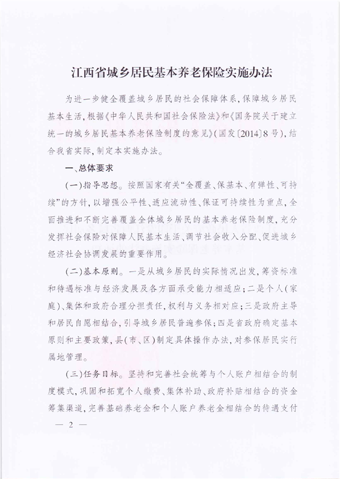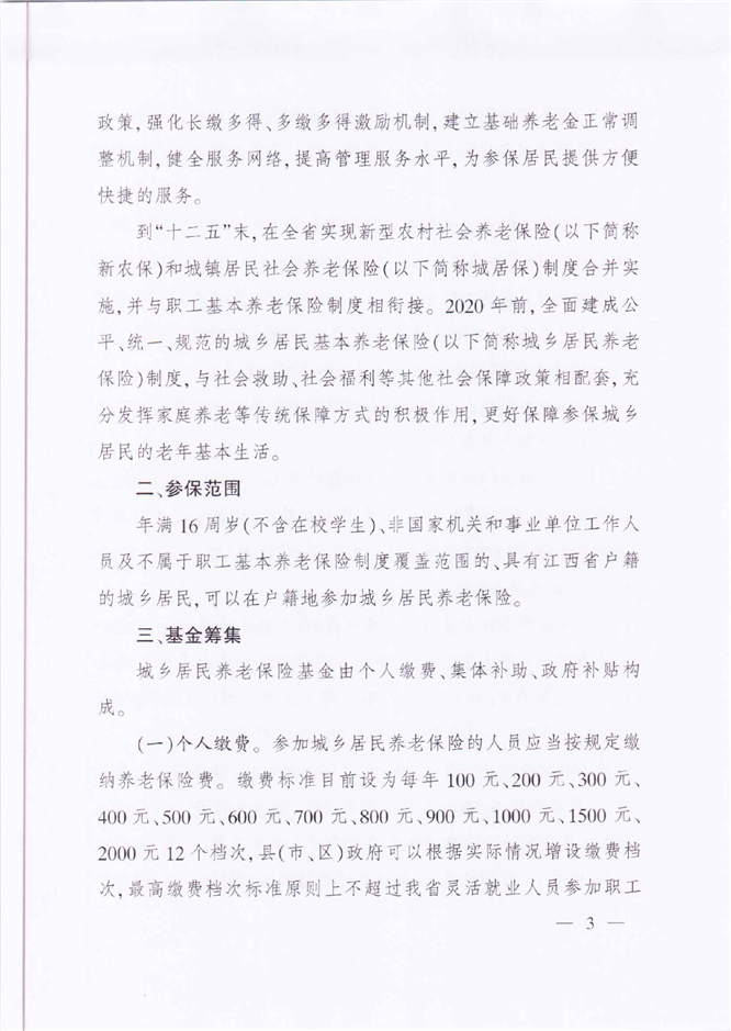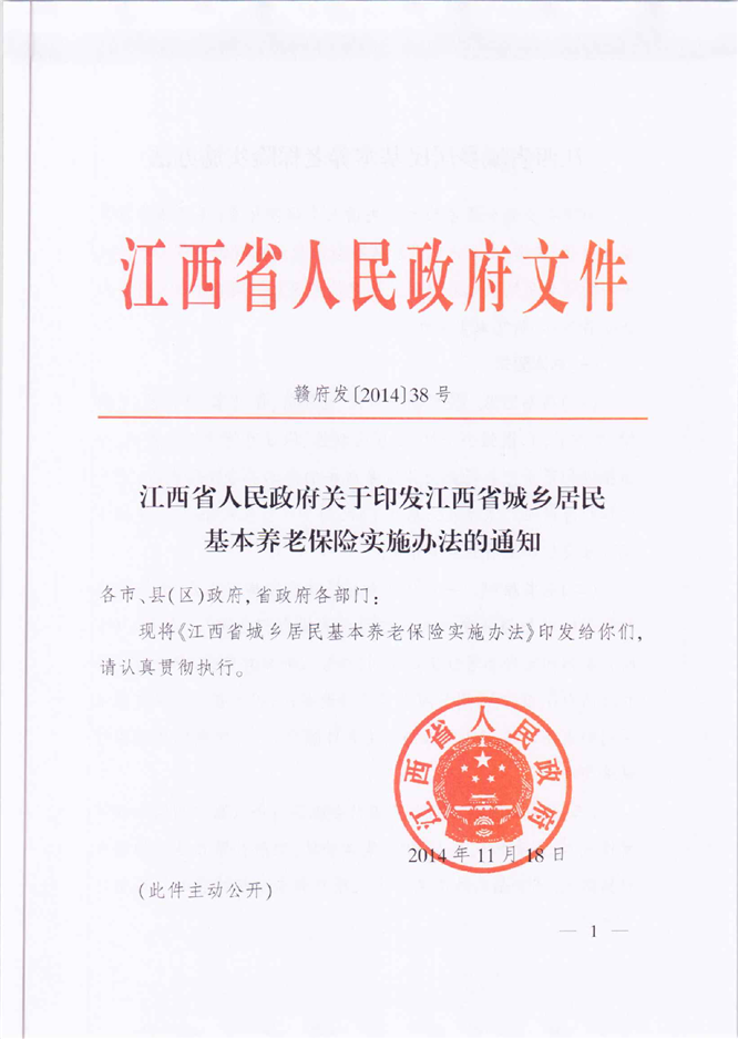 江西省人民政府關于印發江西省城鄉居民基本養老保險實施辦法的通知