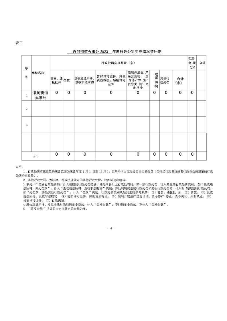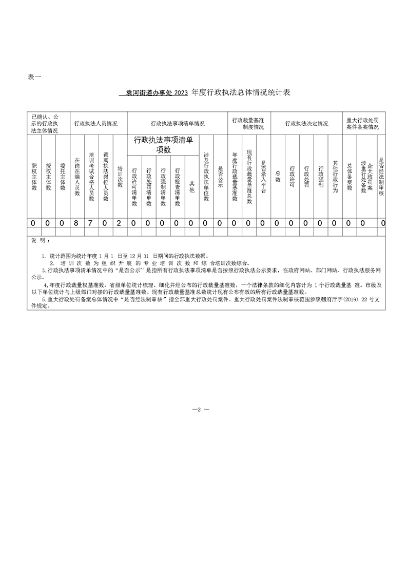 袁河街道辦事處2023年度行政執法數據