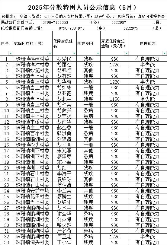 2025年分散特困人員公示信息(5月)