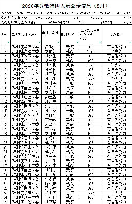 信息索取號: 3605020001-2026-02436 發布日期: 2026-02-04 責任部門: 渝水區珠珊鎮人民政府