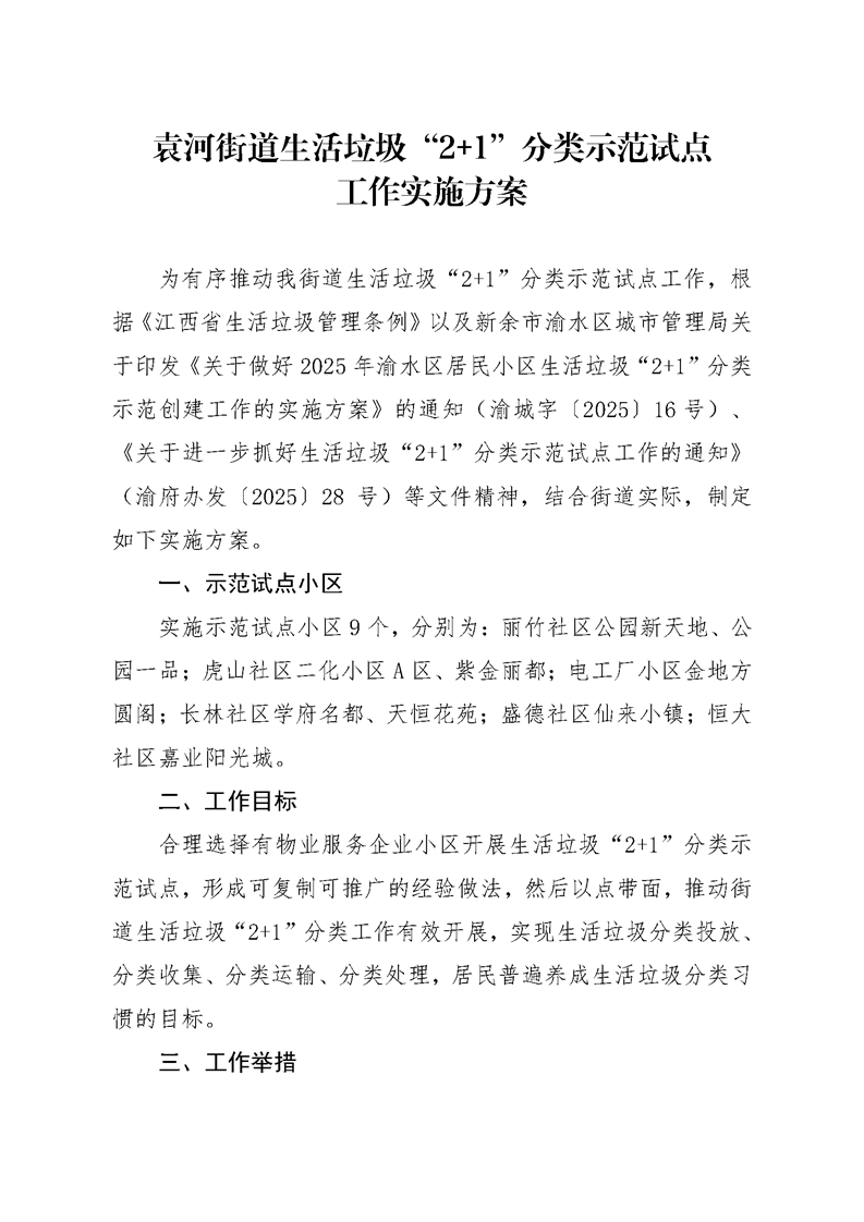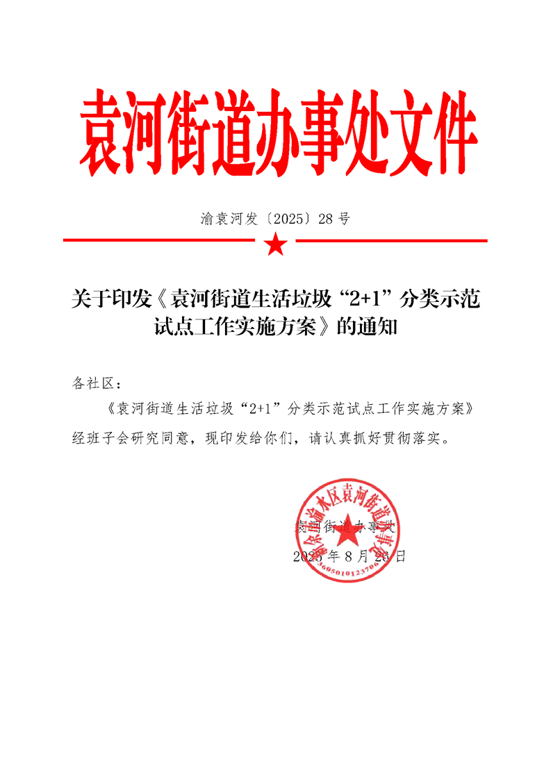 關(guān)于印發(fā)《袁河街道生活垃圾“2+1”分類示范試點(diǎn)工作實(shí)施方案》的通知