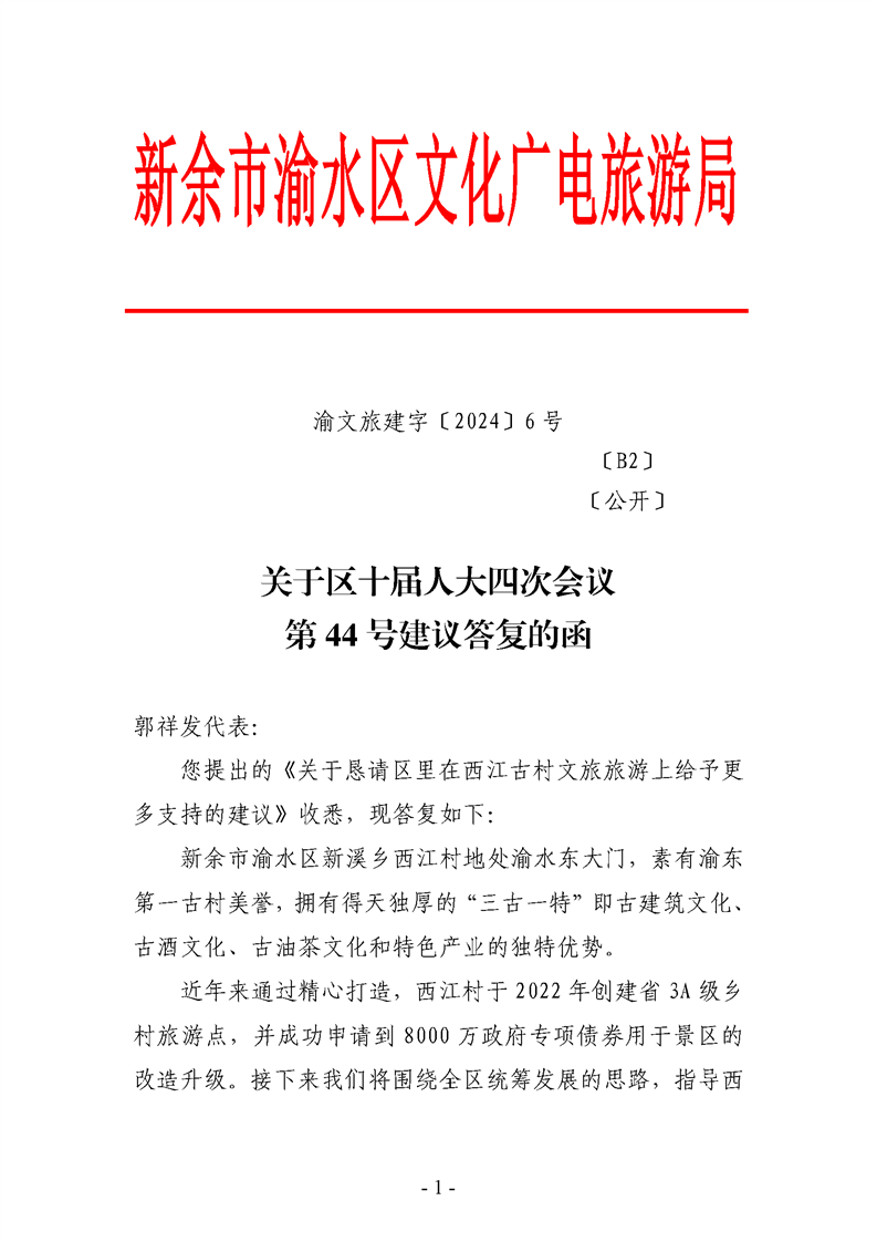 關于區十屆人大四次會議第44號建議答復的函