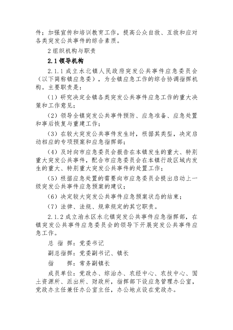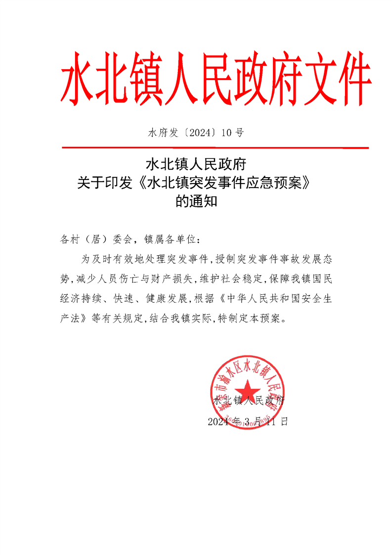 關(guān)于印發(fā)《水北鎮(zhèn)突發(fā)事件應急預案》的通知