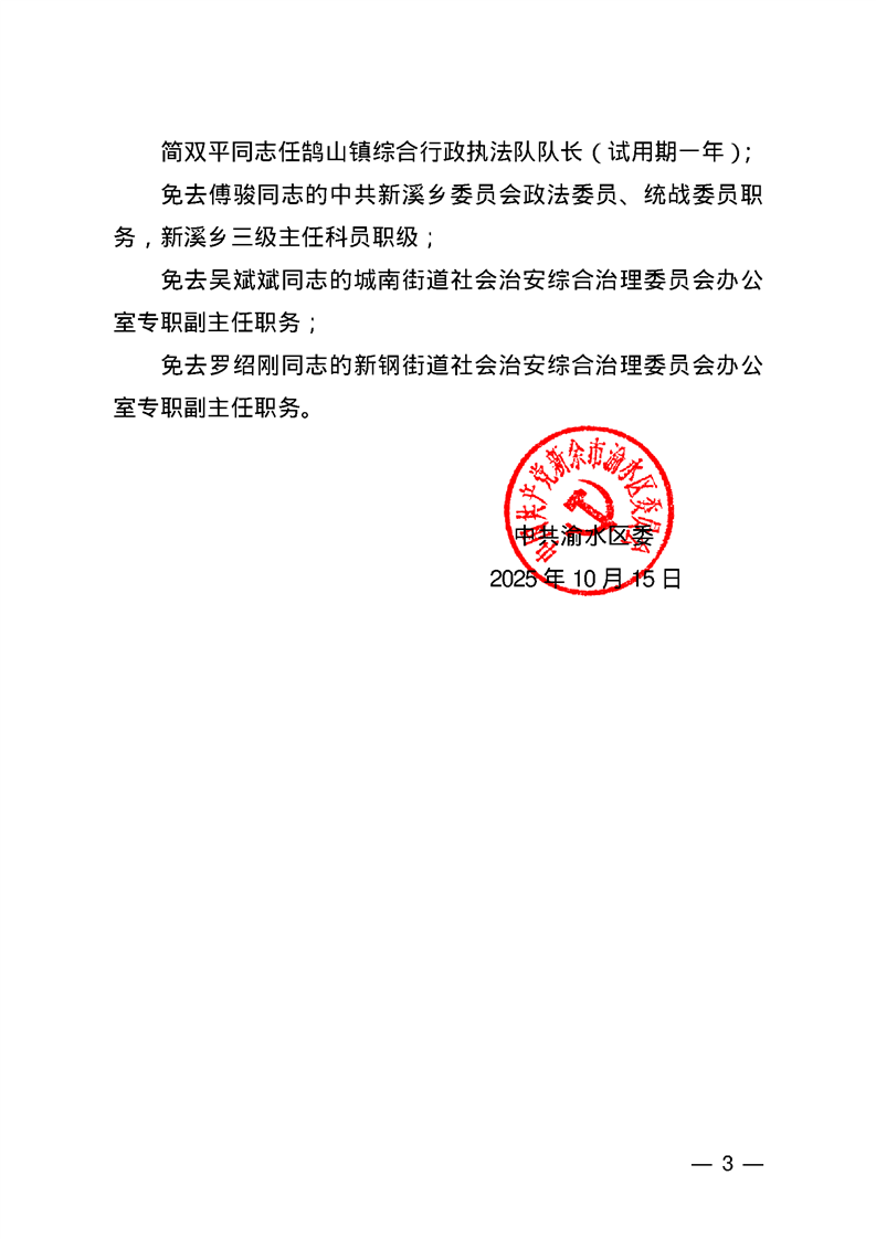 您當前所在位置: 首頁>信息公開>部門信息公開目錄>新鋼街道辦>人事信息>人事任免