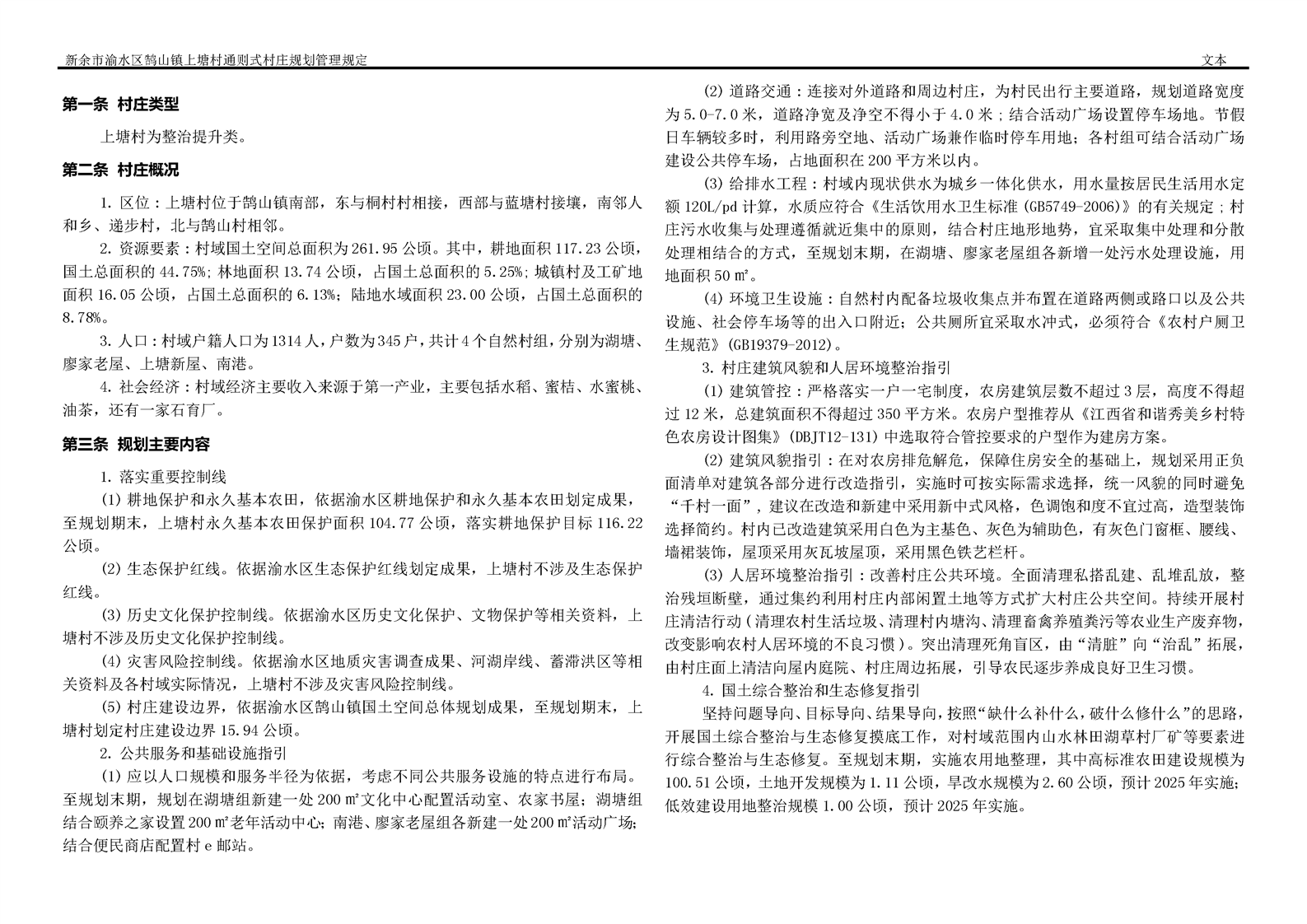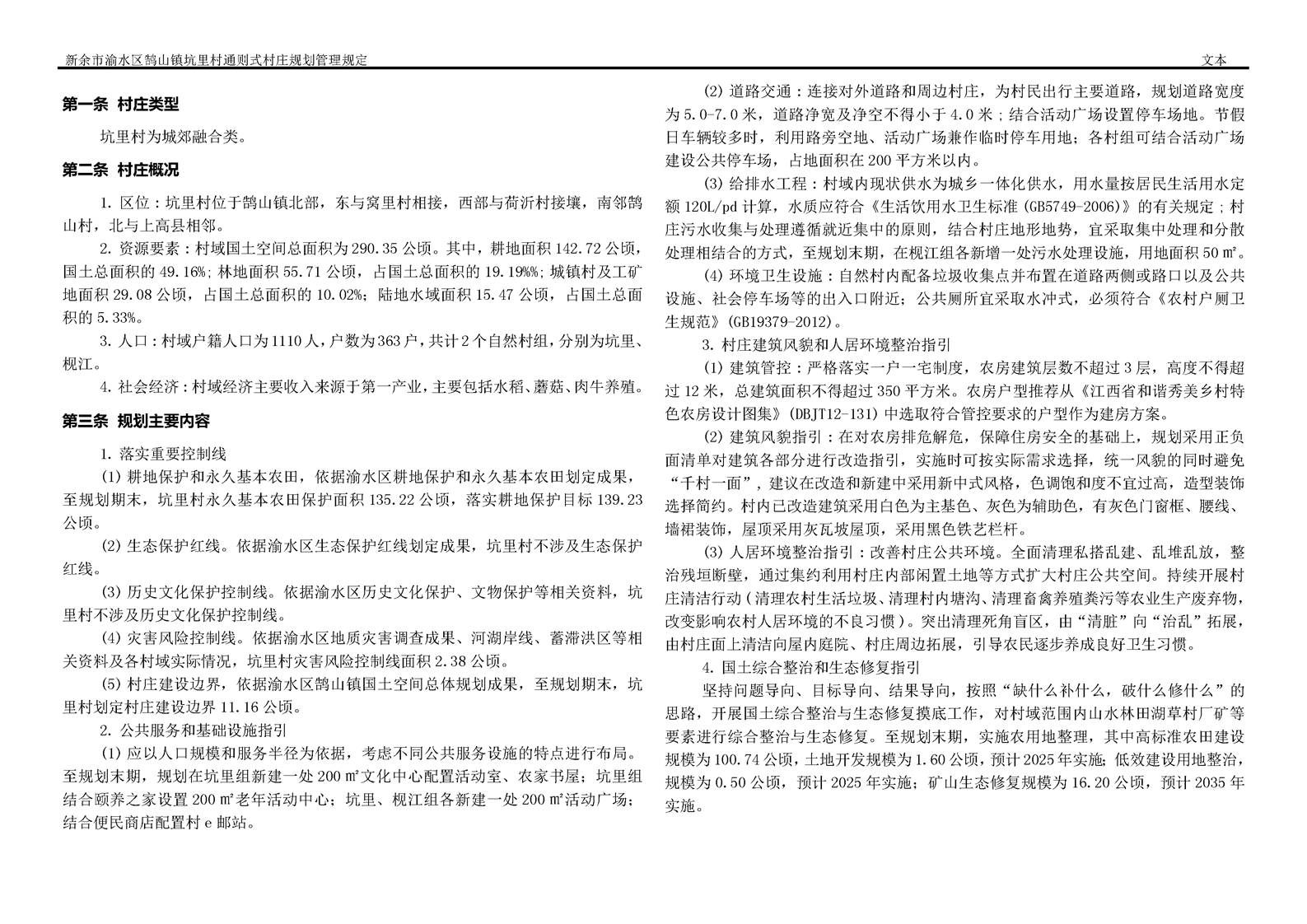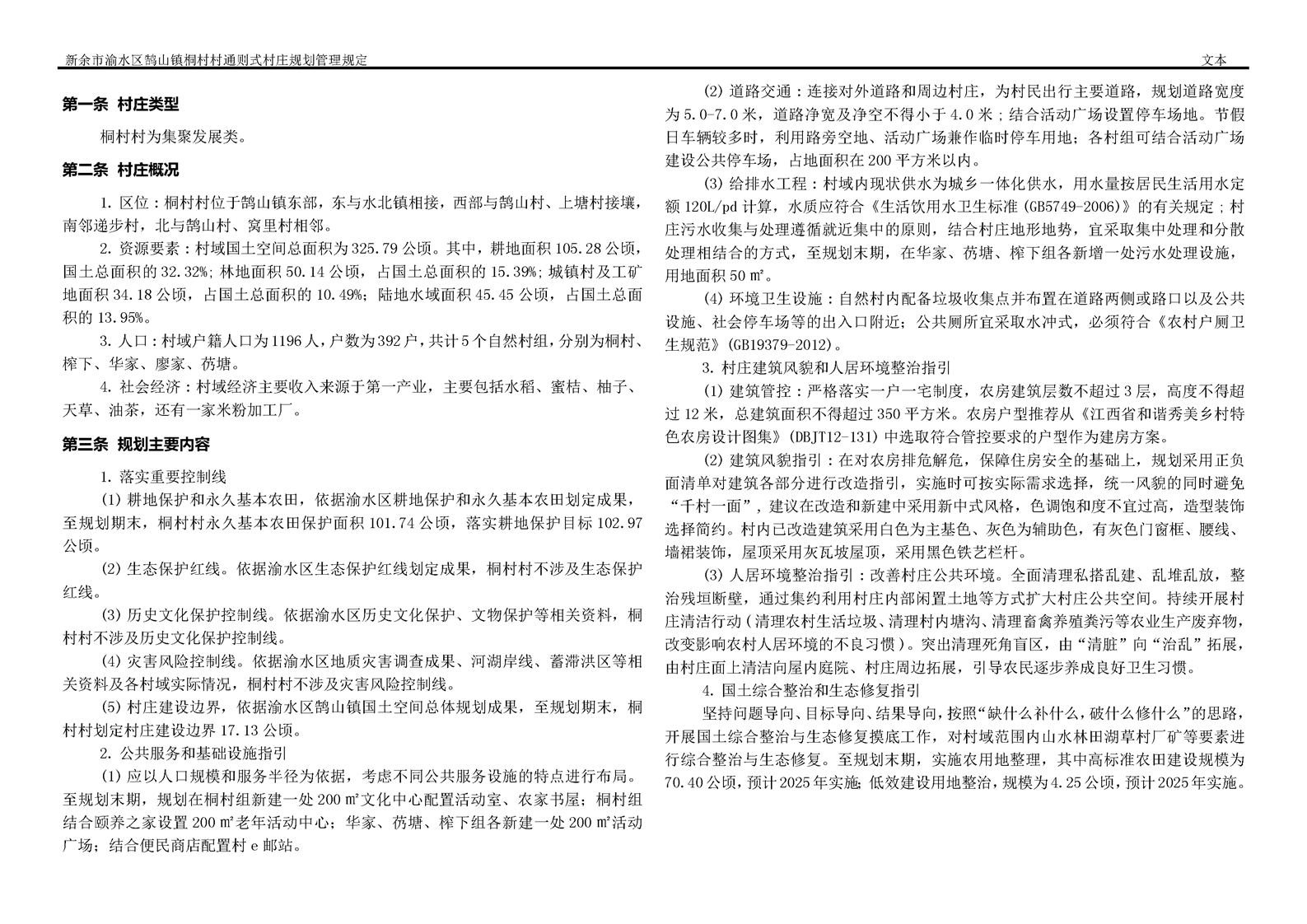新余市渝水區鵠山鎮窩里村通則式村莊規劃管理規定