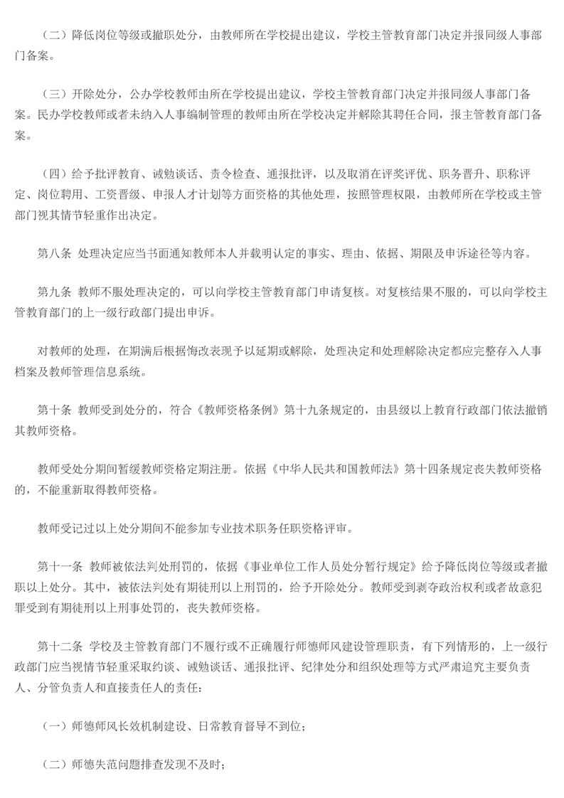 教育部關于印發《中小學教師違反職業道德行為處理辦法(2018年修訂)》的通知 - 中華人民共和國教育部政府門戶網站