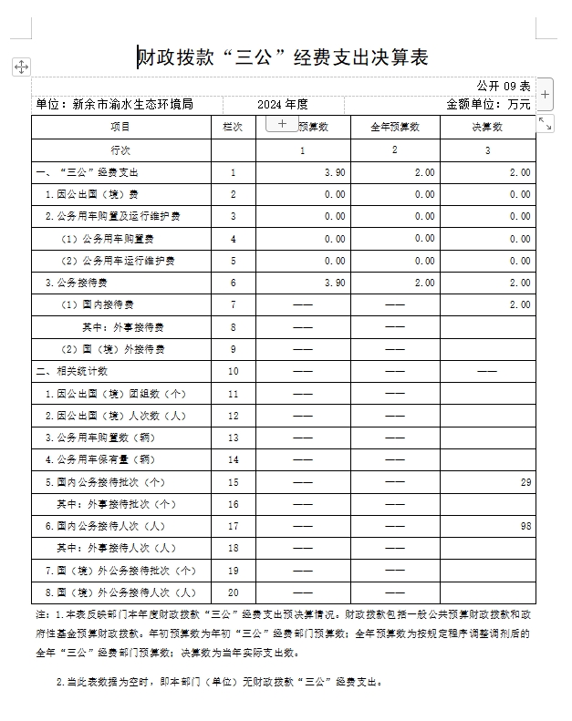 您當前所在位置: 首頁>信息公開>部門信息公開目錄>渝水生態環境局>財政資金>部門“三公”經費