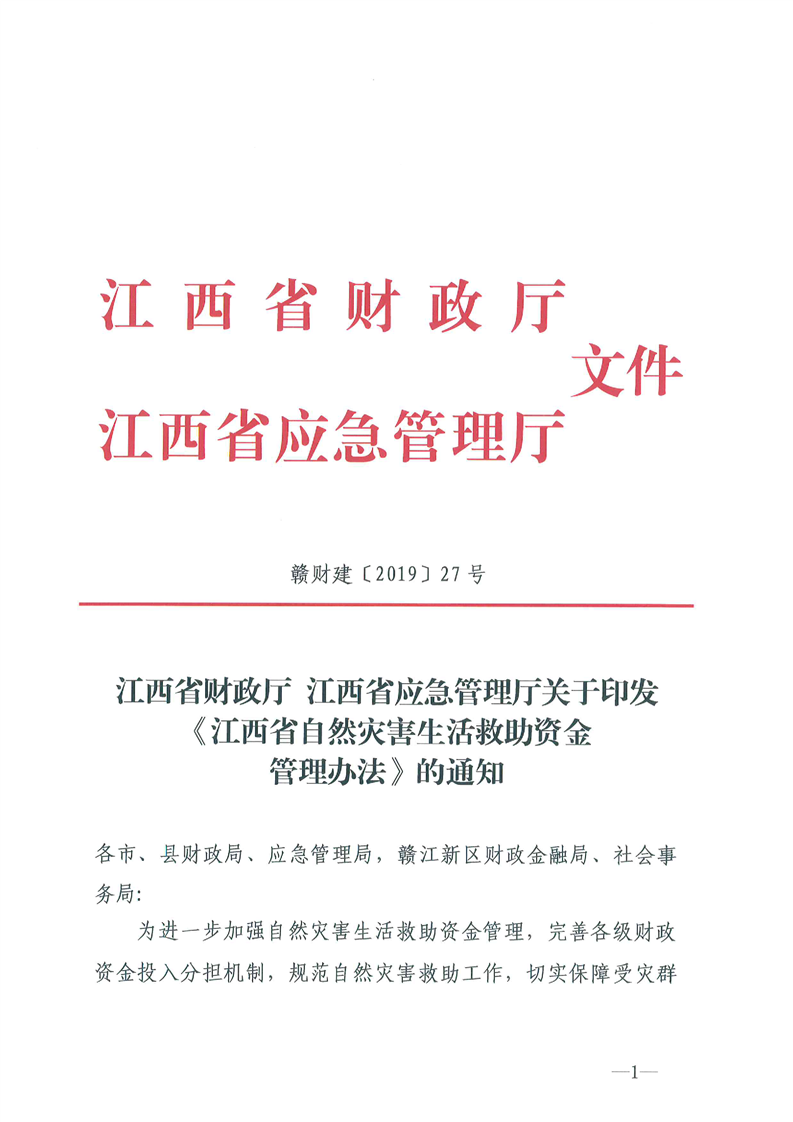 江西省自然災(zāi)害救助資金管理辦法