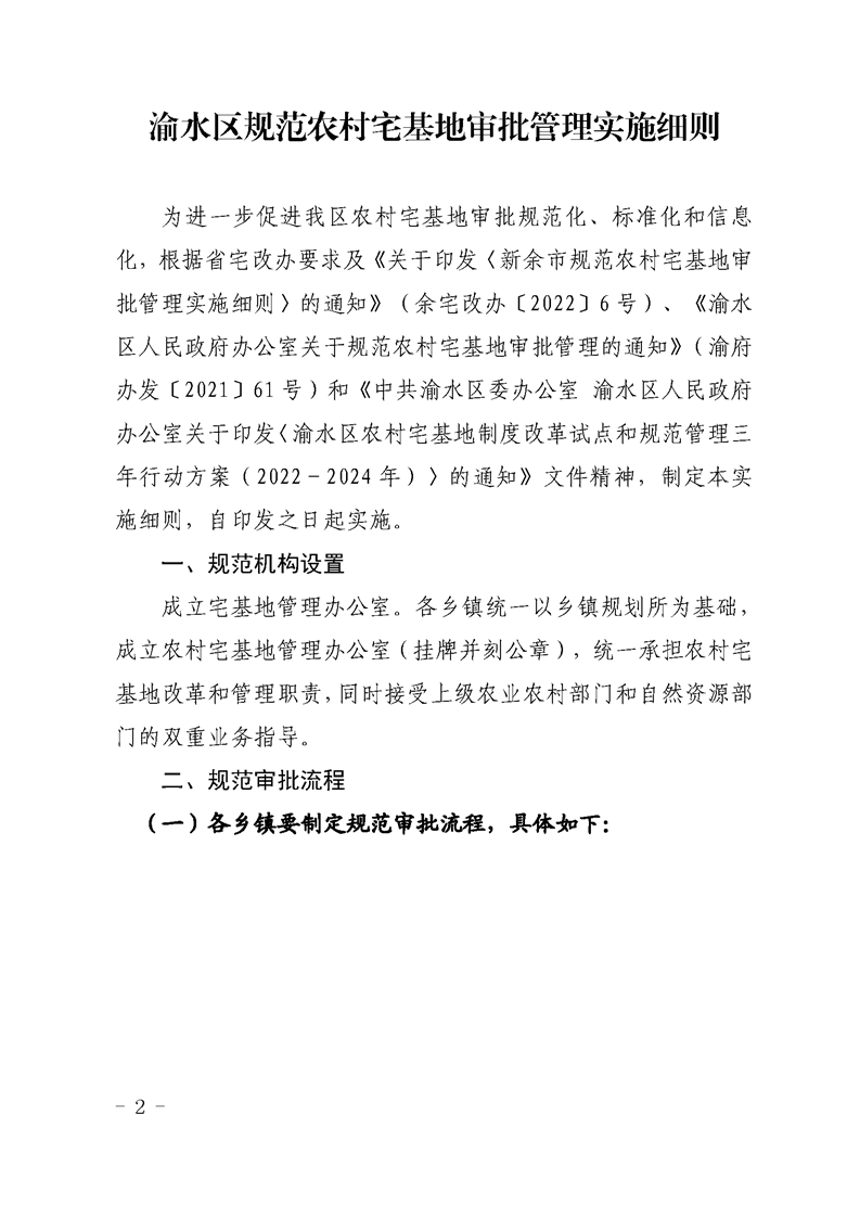渝水區(qū)規(guī)范農村宅基地審批管理實施細則