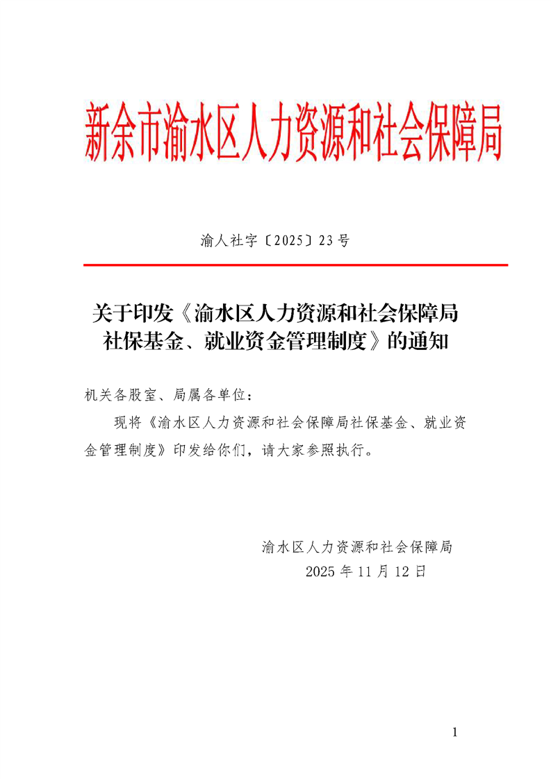 渝水區人力資源和社會保障局社保基金、就業資金管理制度