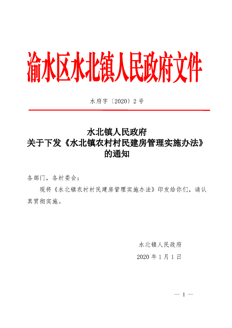 【失效】水府字[2020]2號(hào)關(guān)于下發(fā)《水北鎮(zhèn)農(nóng)村村民建房管理實(shí)施辦法》的通知