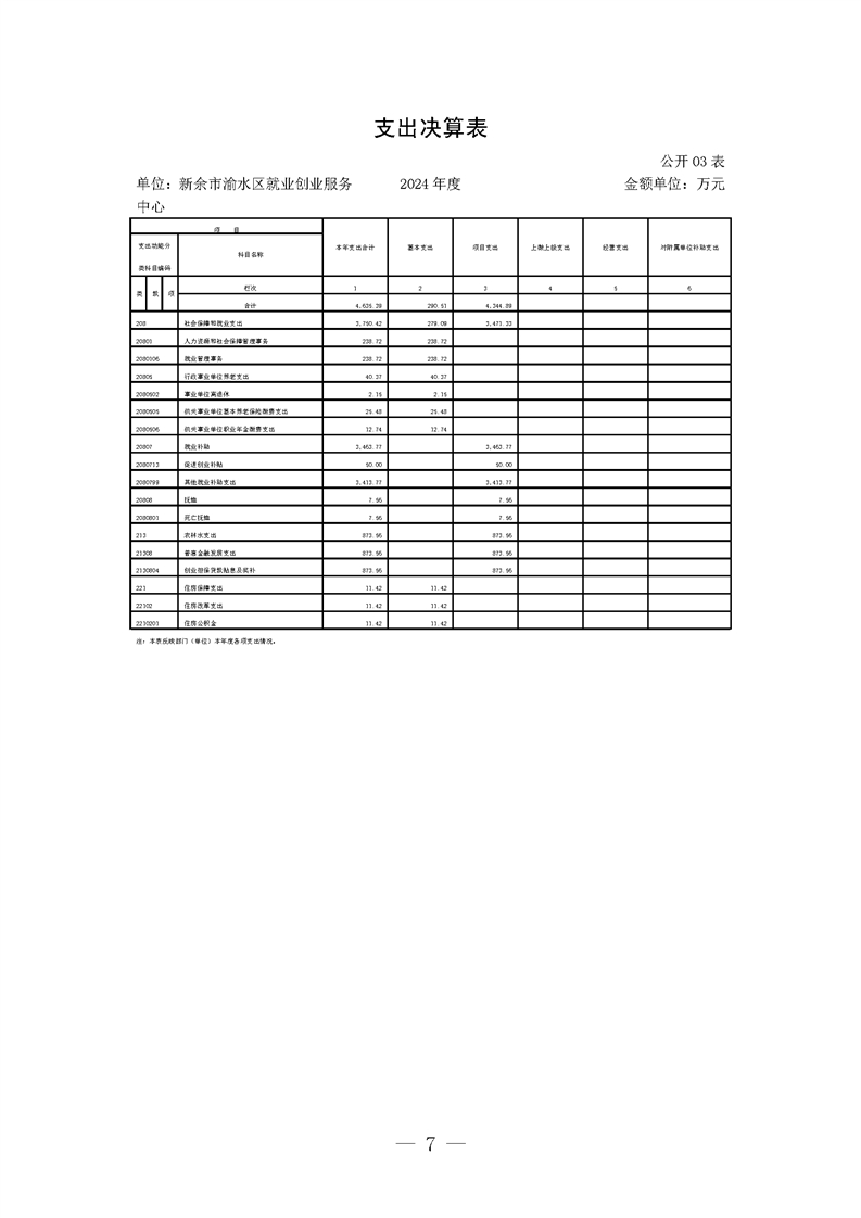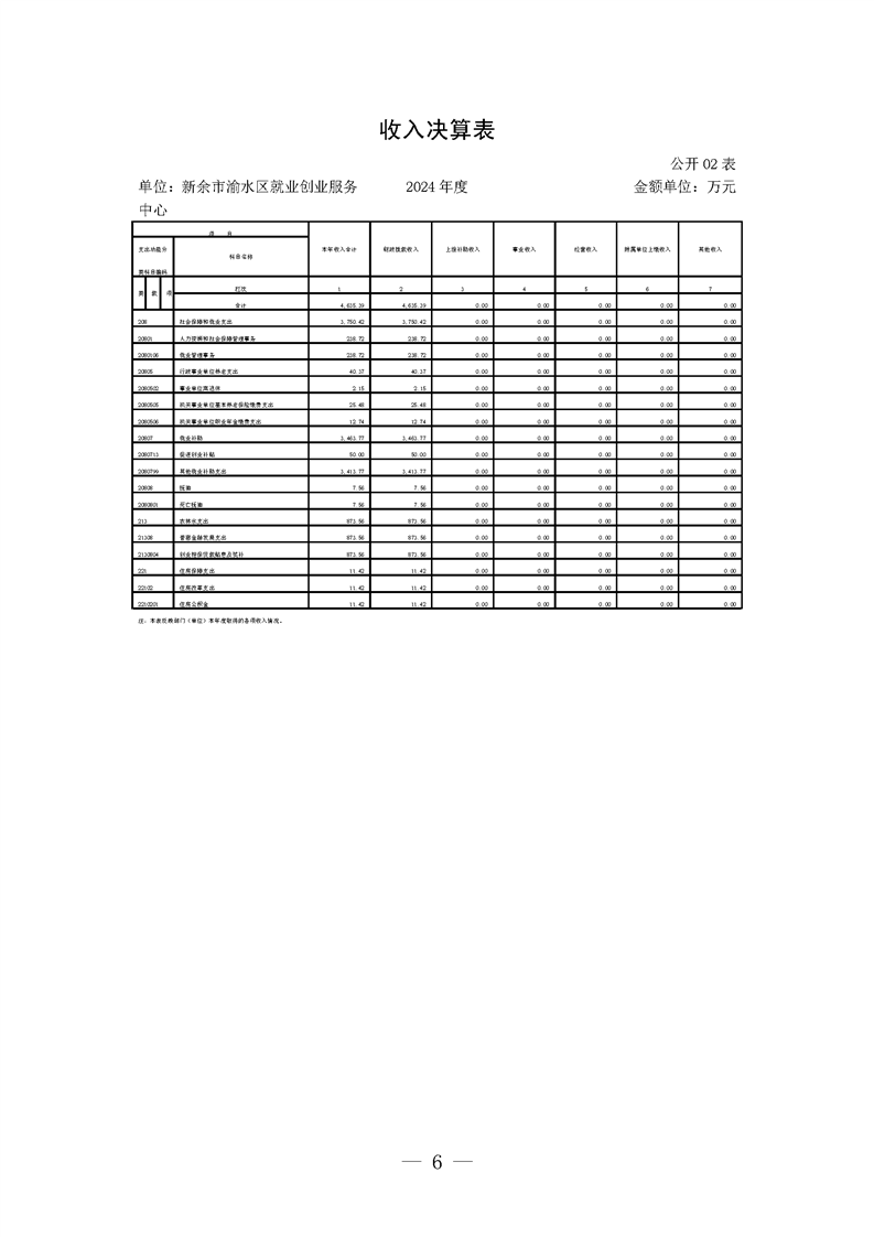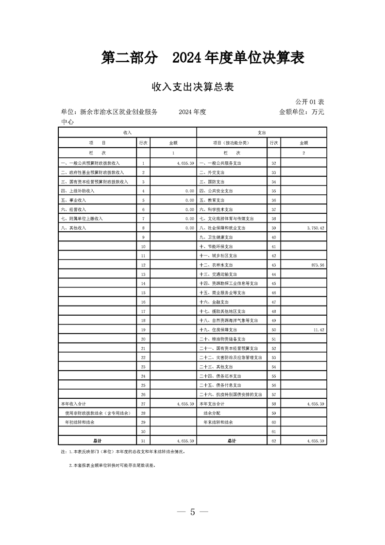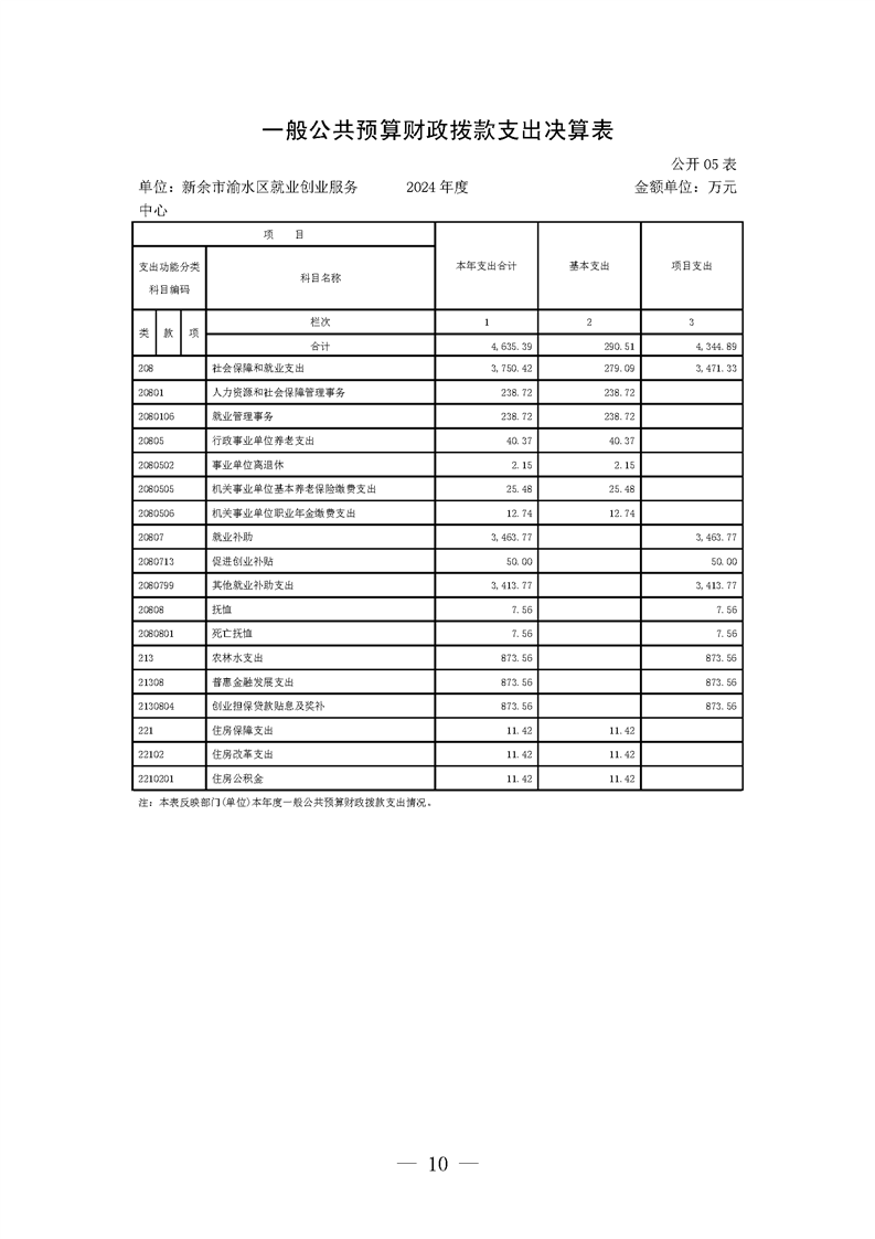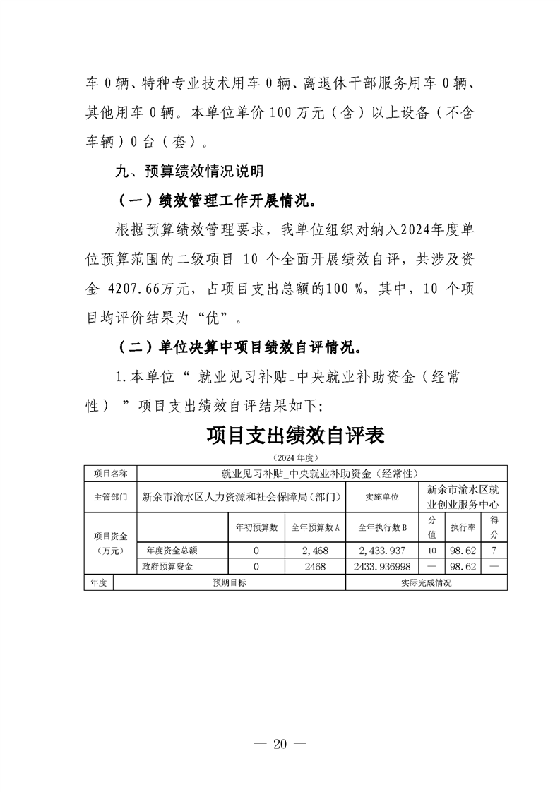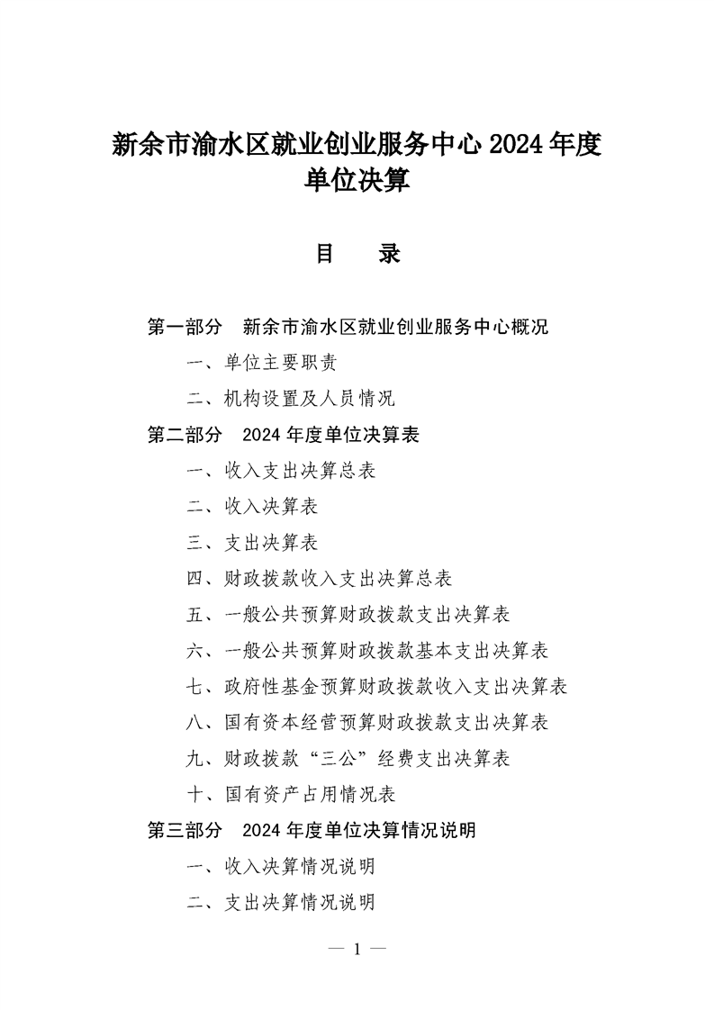 新余市渝水區就業創業服務中心2024年度單位決算