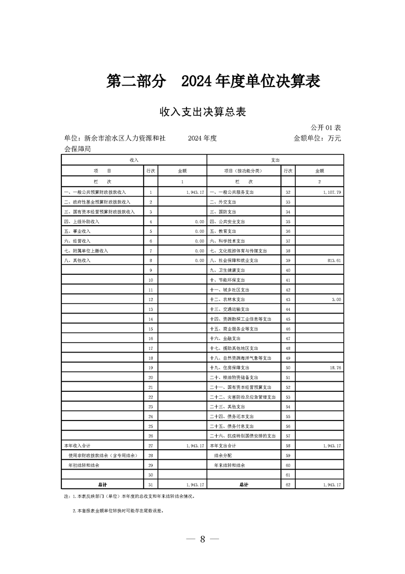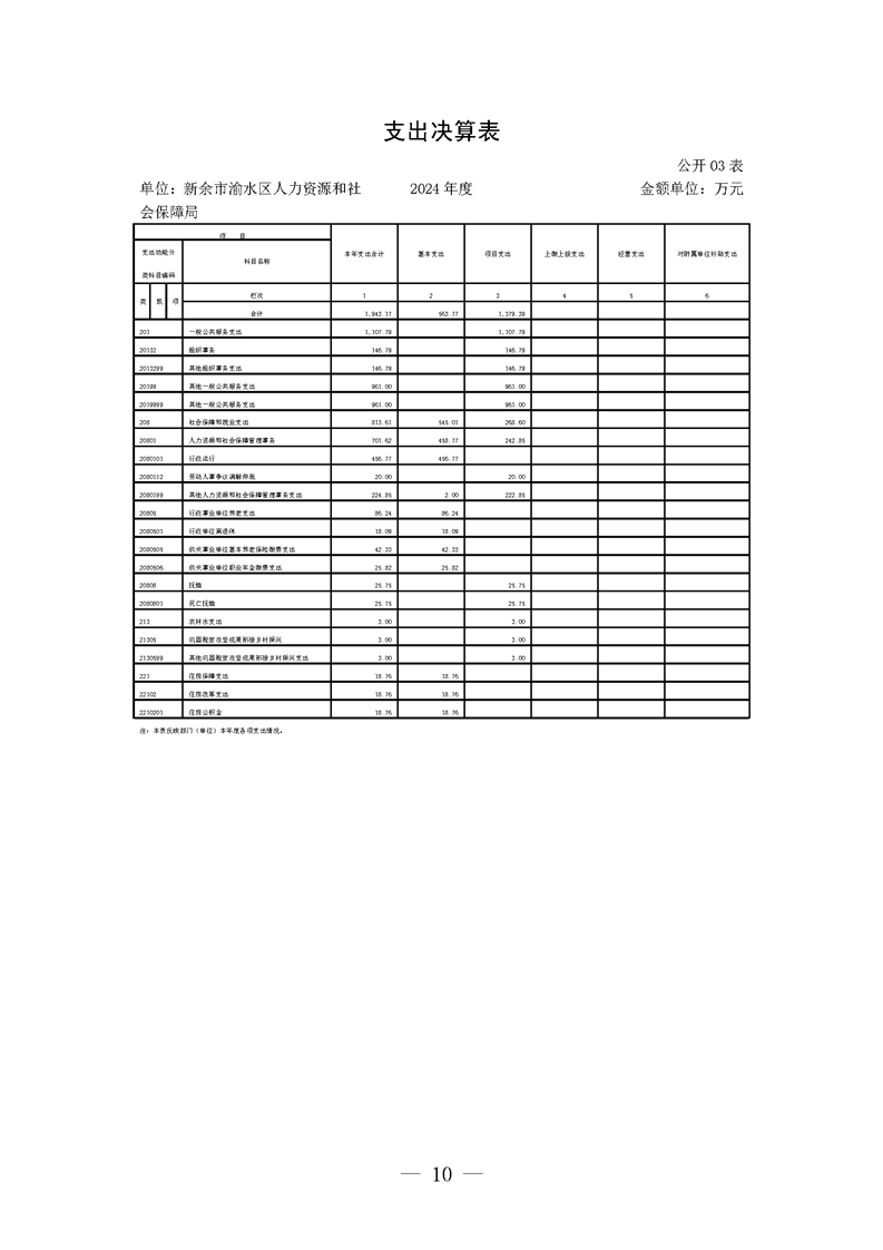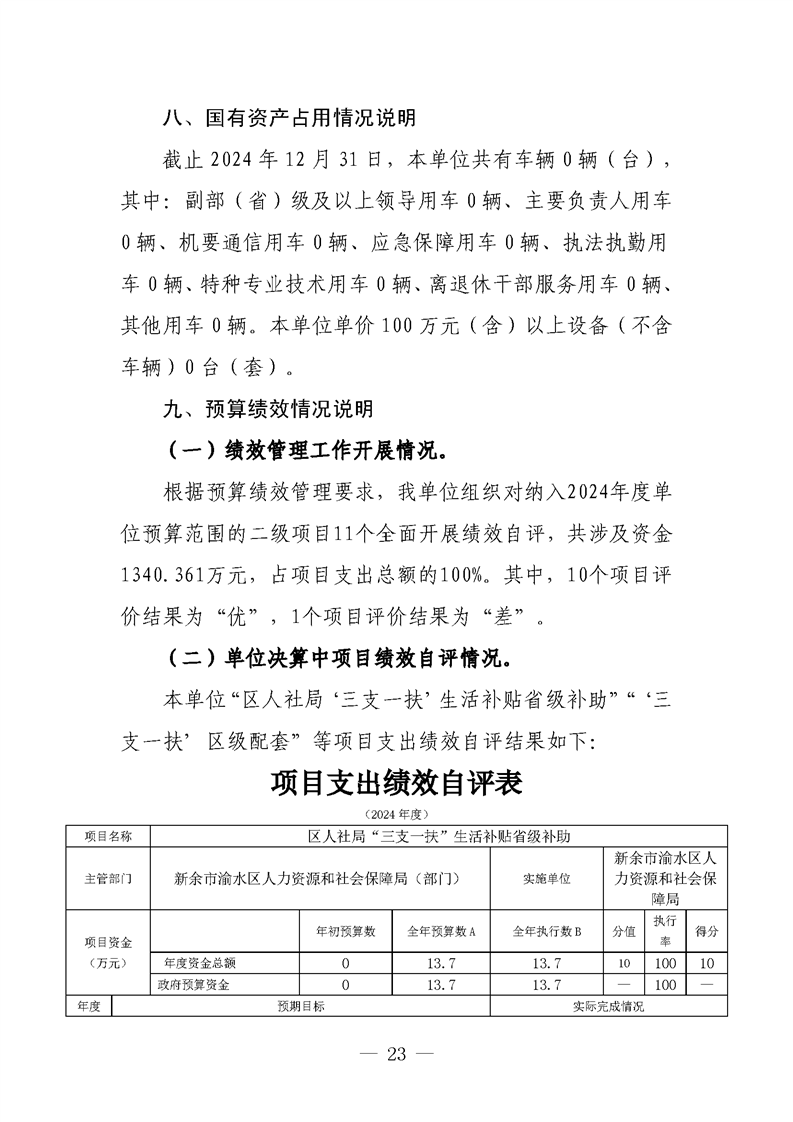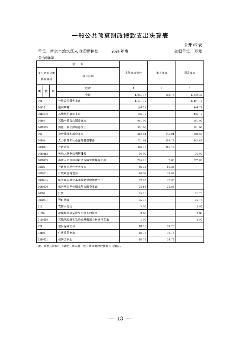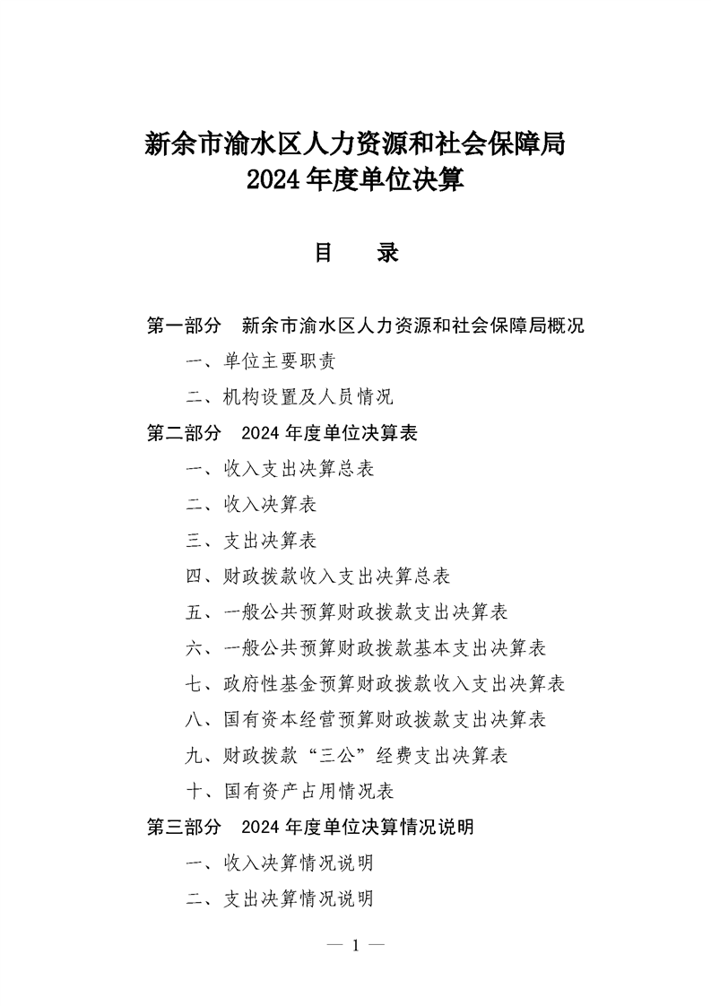 新余市渝水區(qū)人力資源和社會(huì)保障局2024年度單位決算