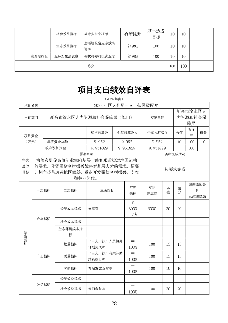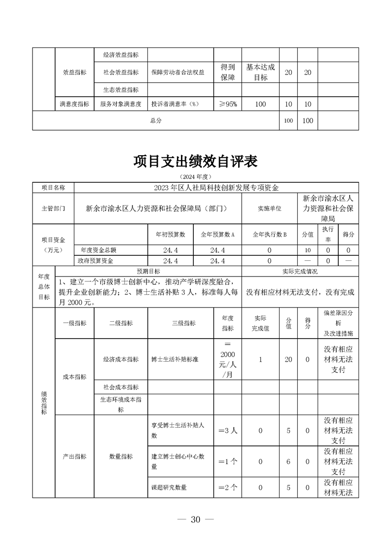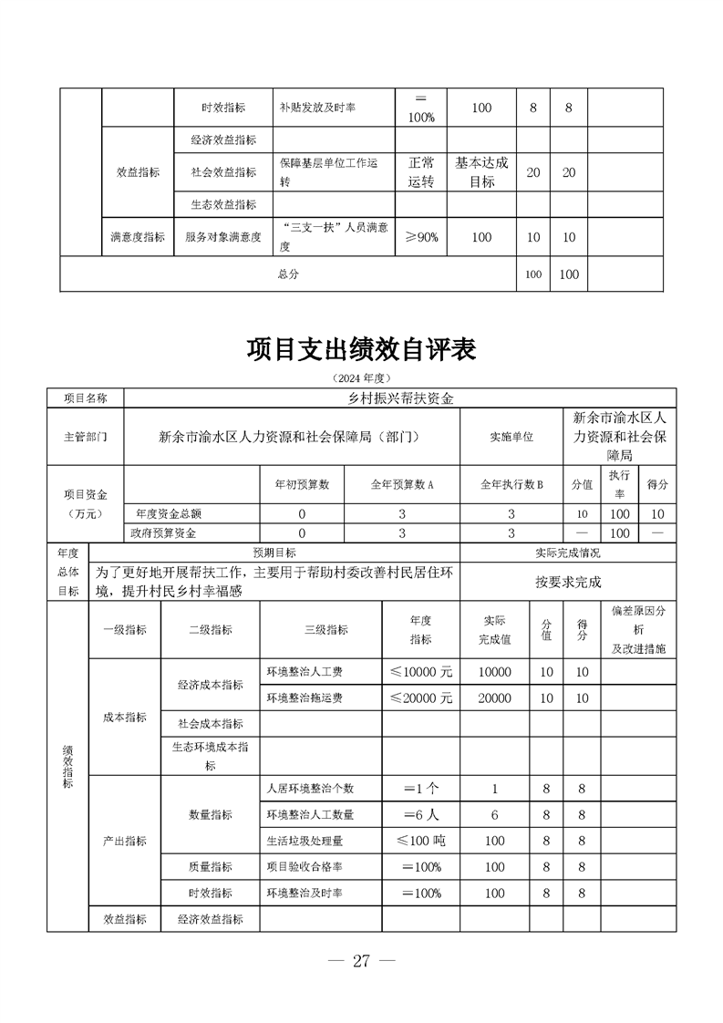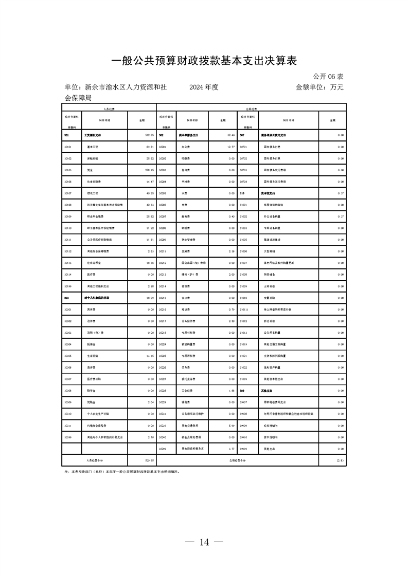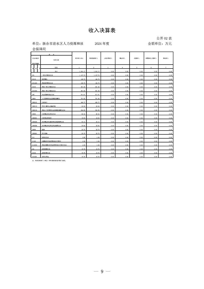 新余市渝水區(qū)人力資源和社會(huì)保障局2024年度單位決算