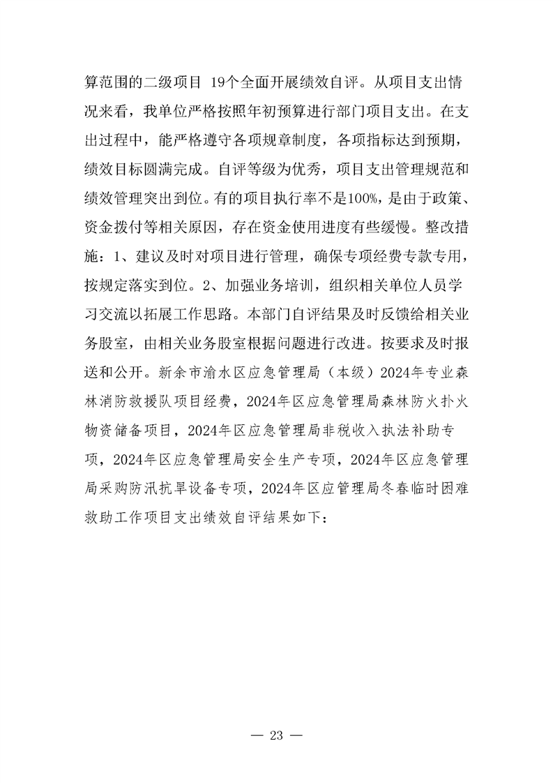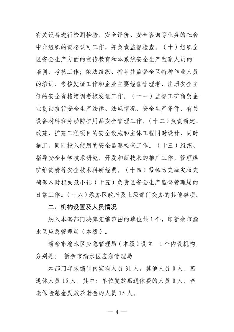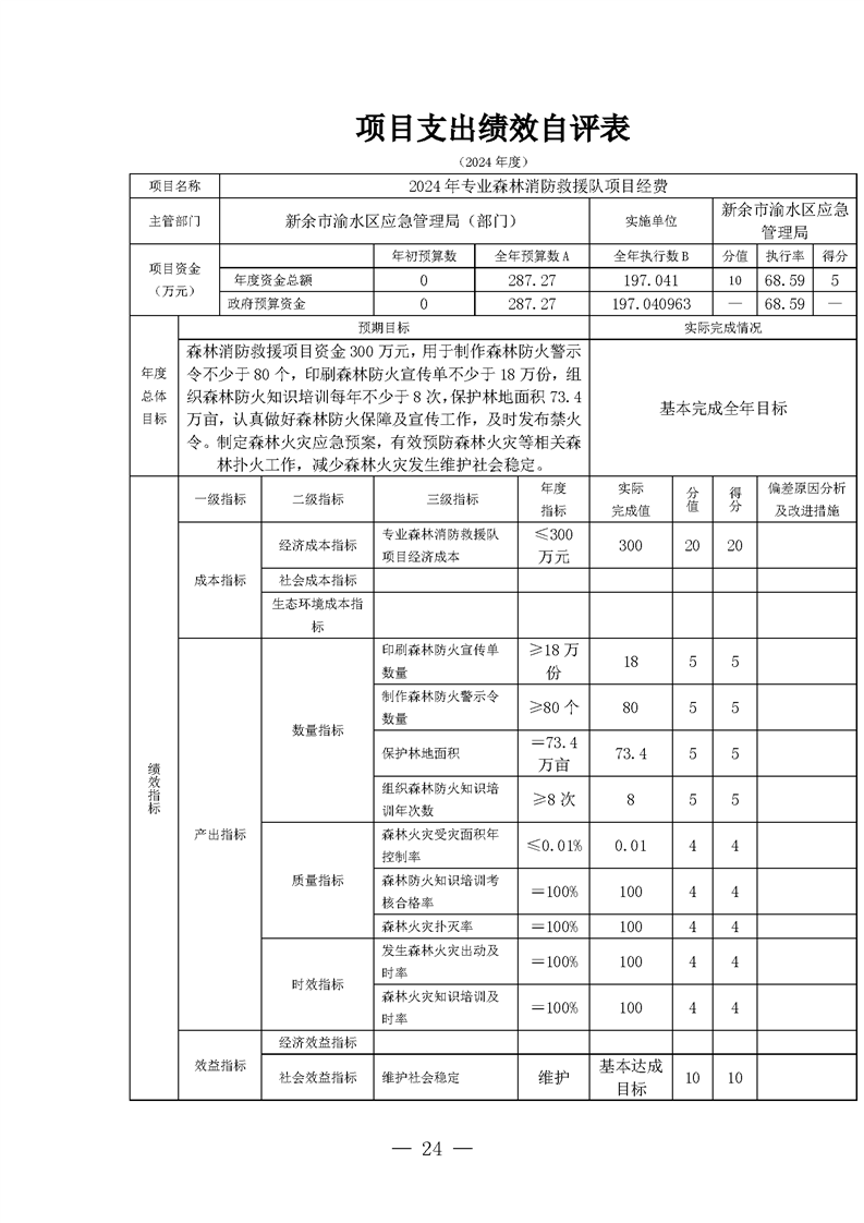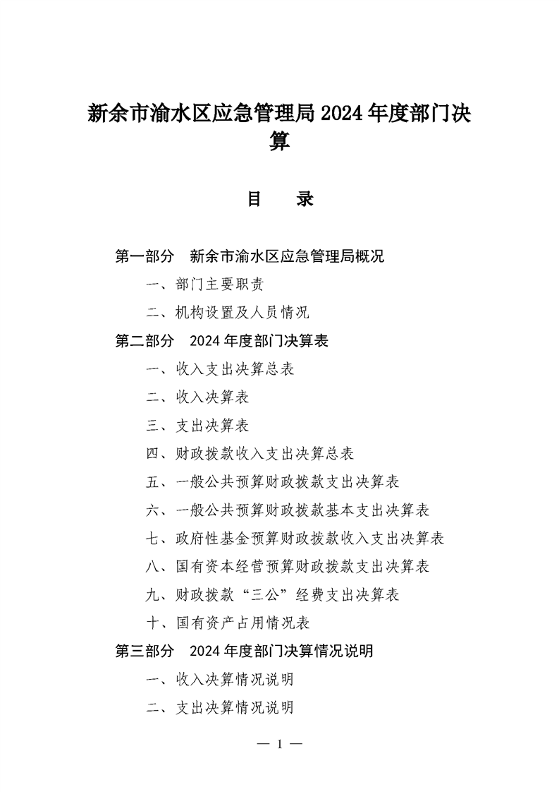 新余市渝水區(qū)應急管理局2024年度部門決算