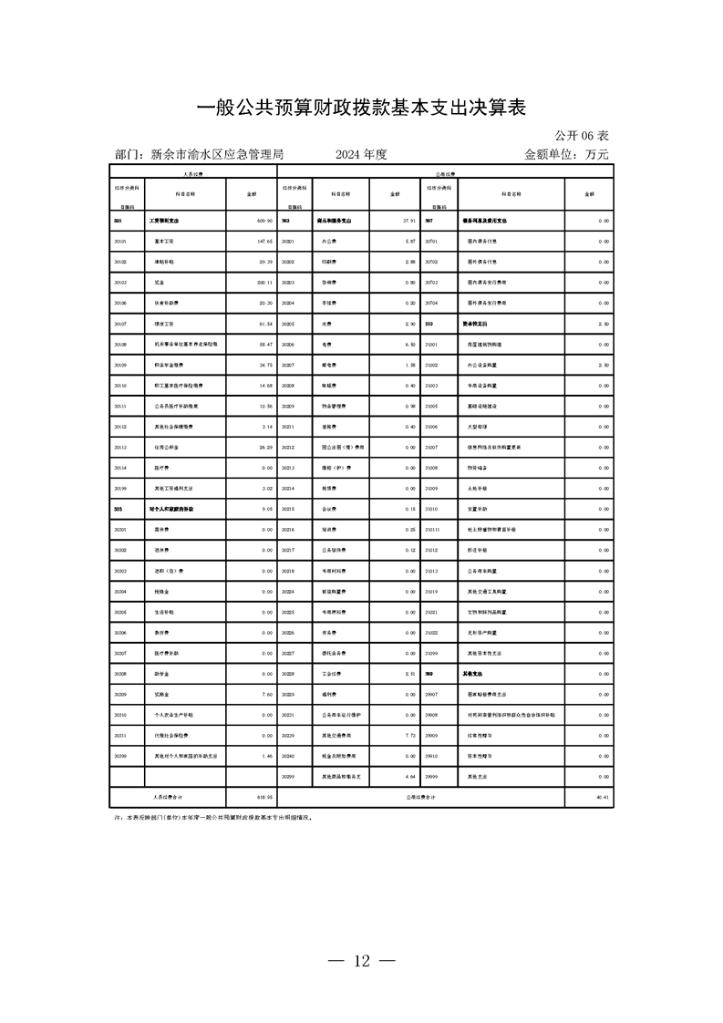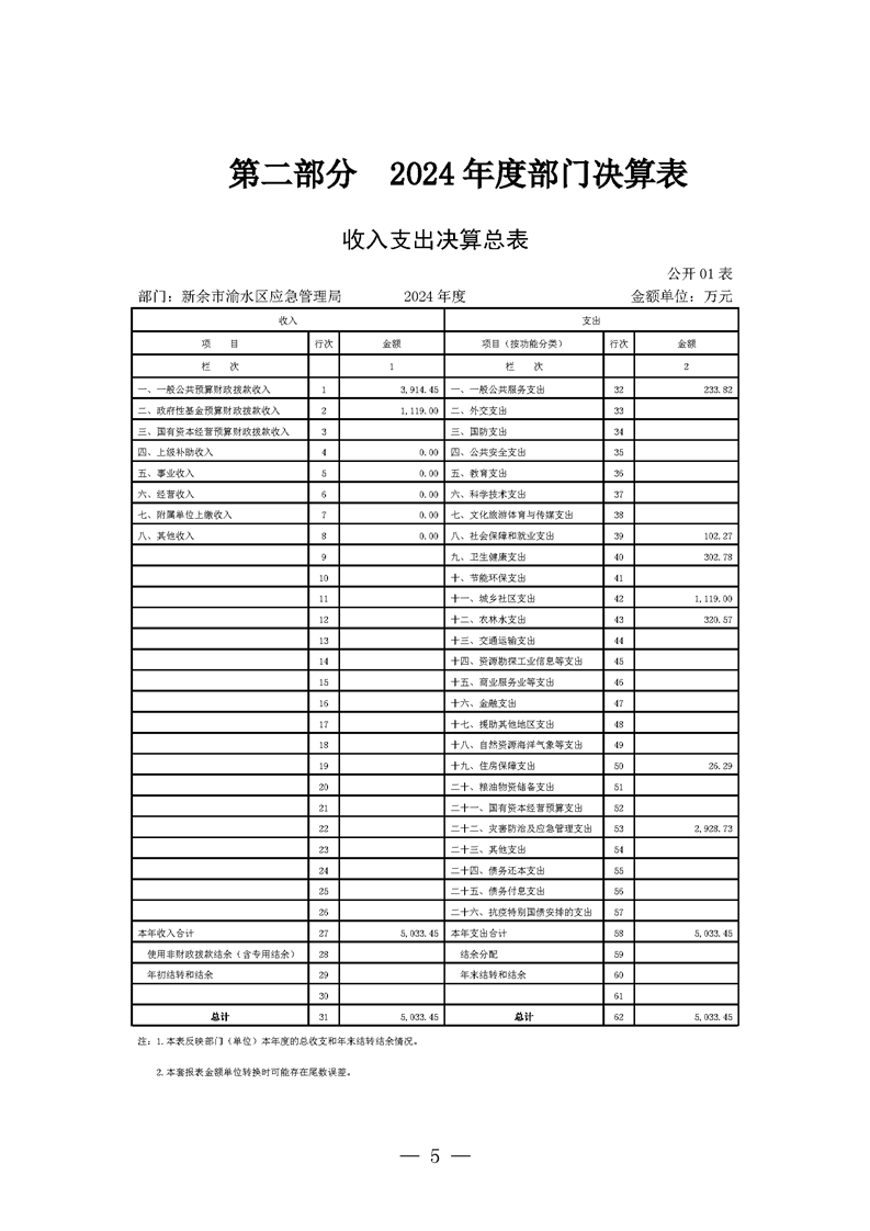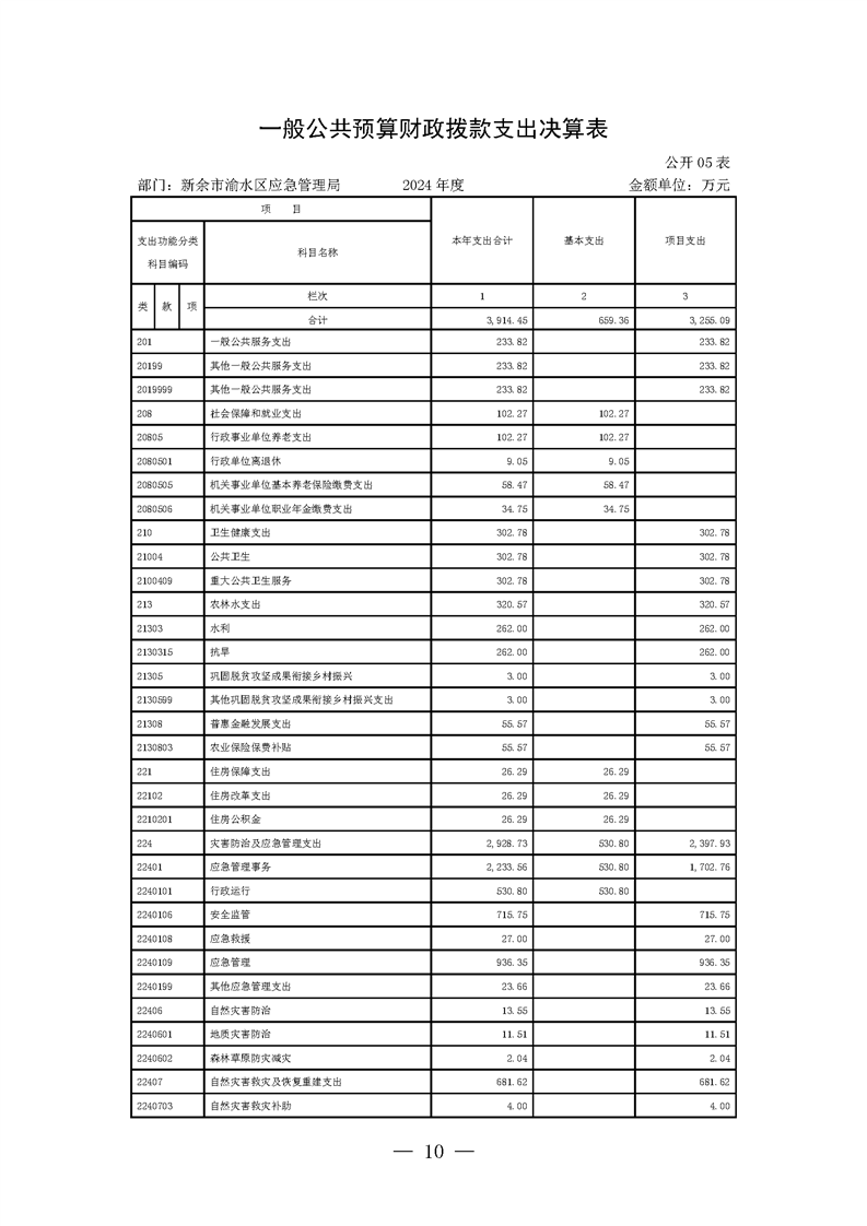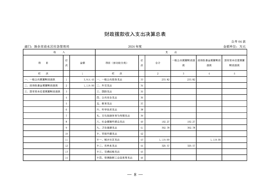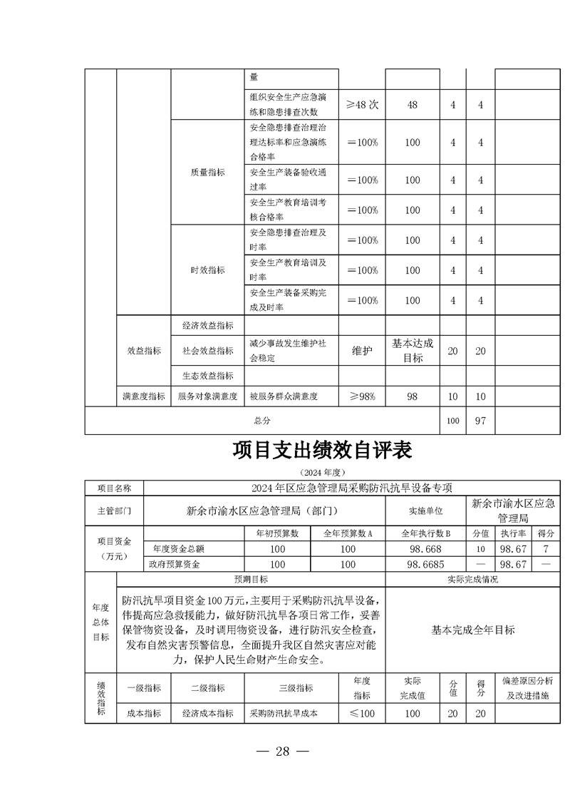 新余市渝水區(qū)應急管理局2024年度部門決算