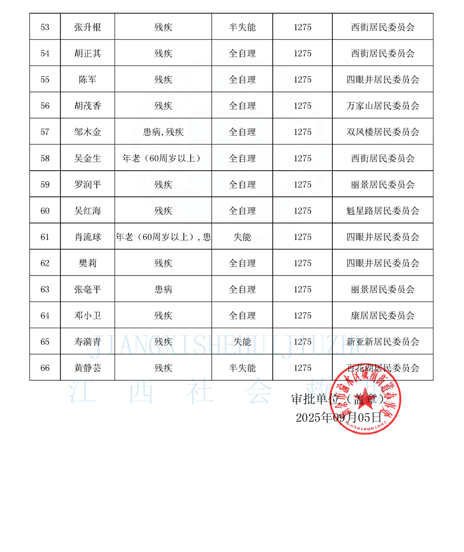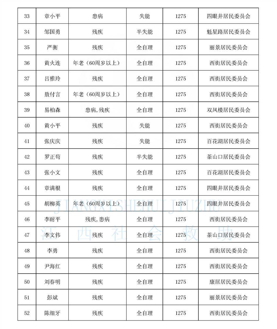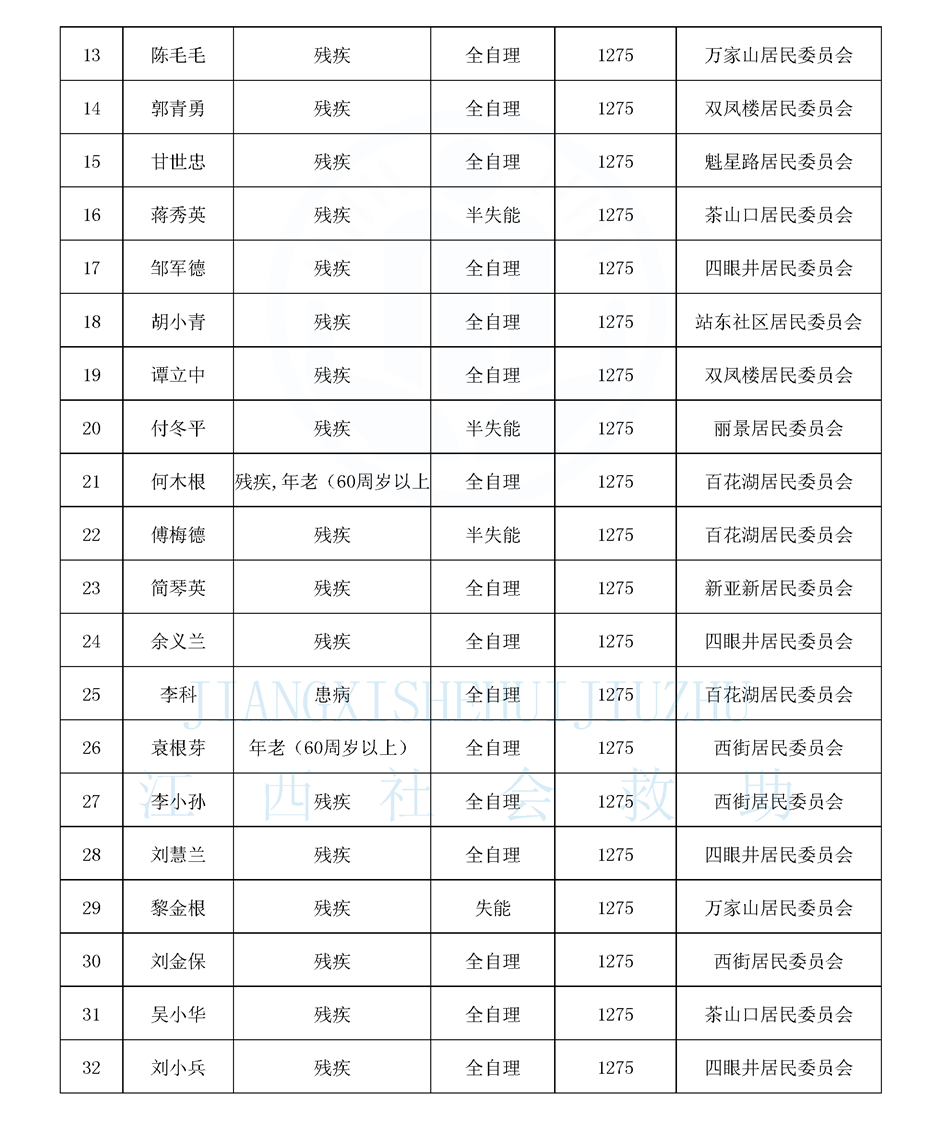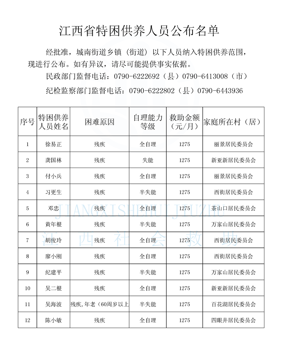 江西省特困供養人員公布名單(城南街道9月)