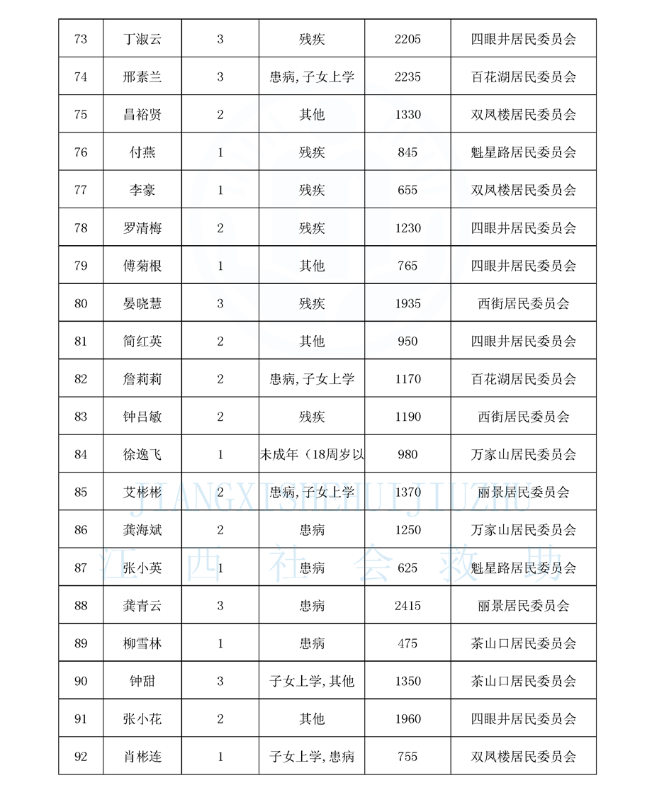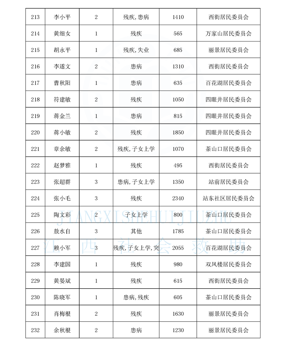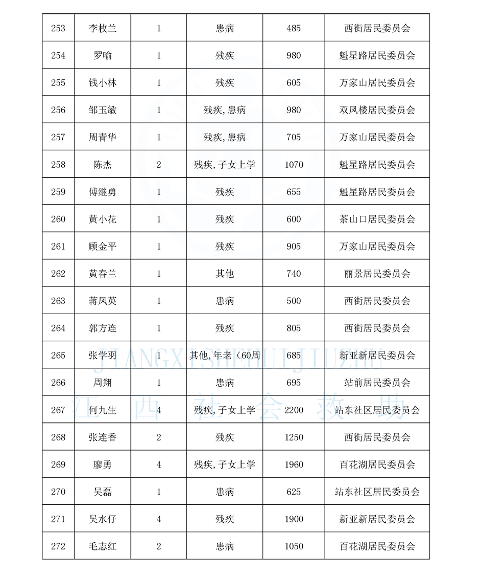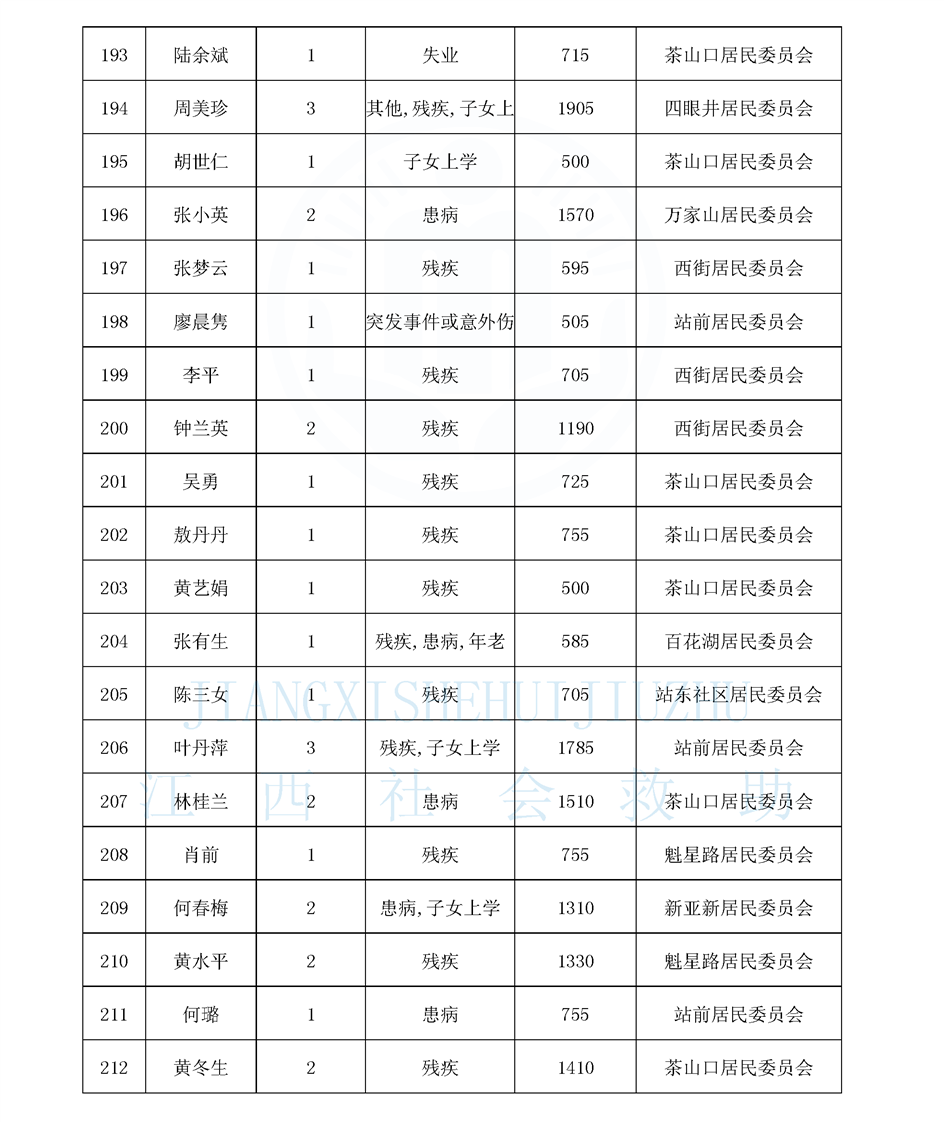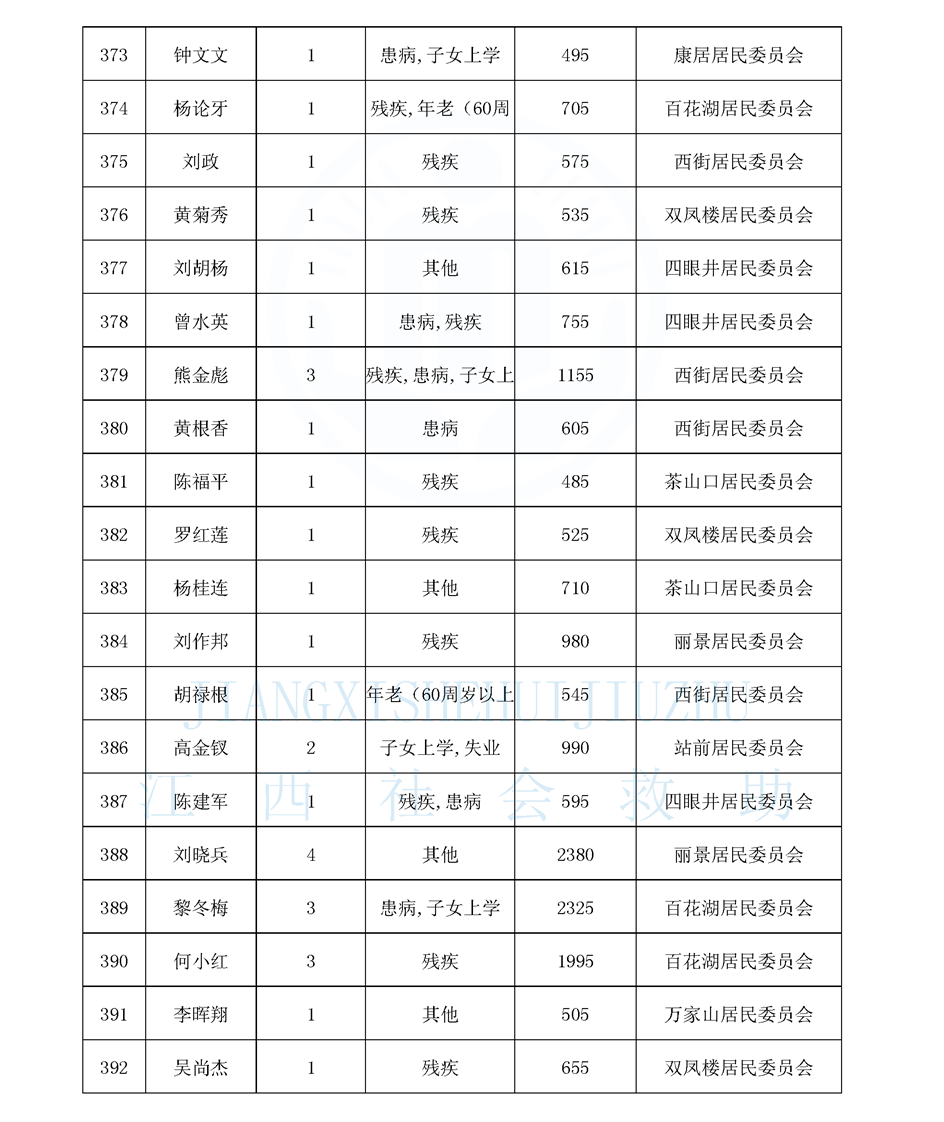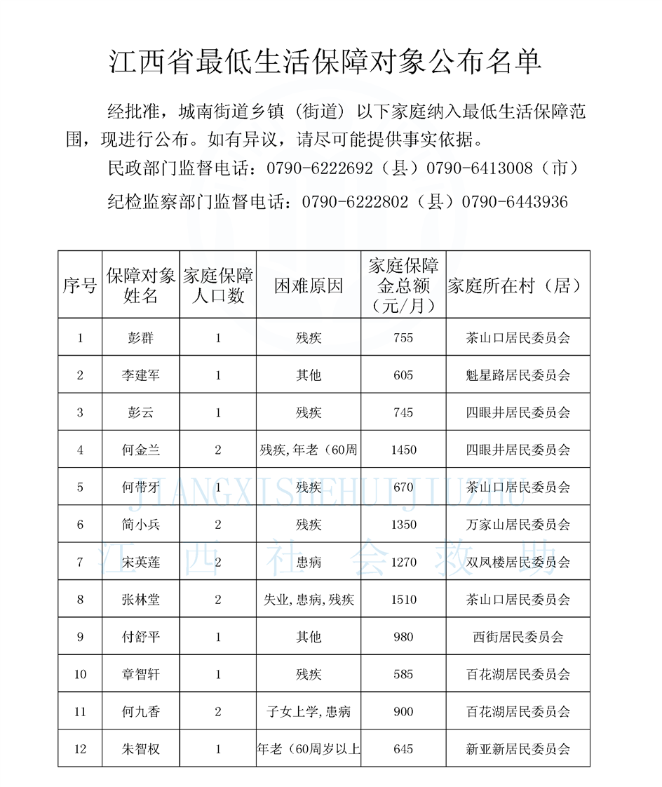 江西省最低生活保障對象公布名單(城南街道1月)